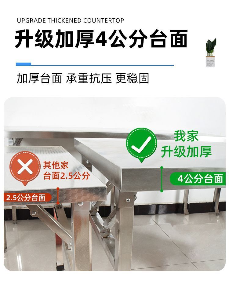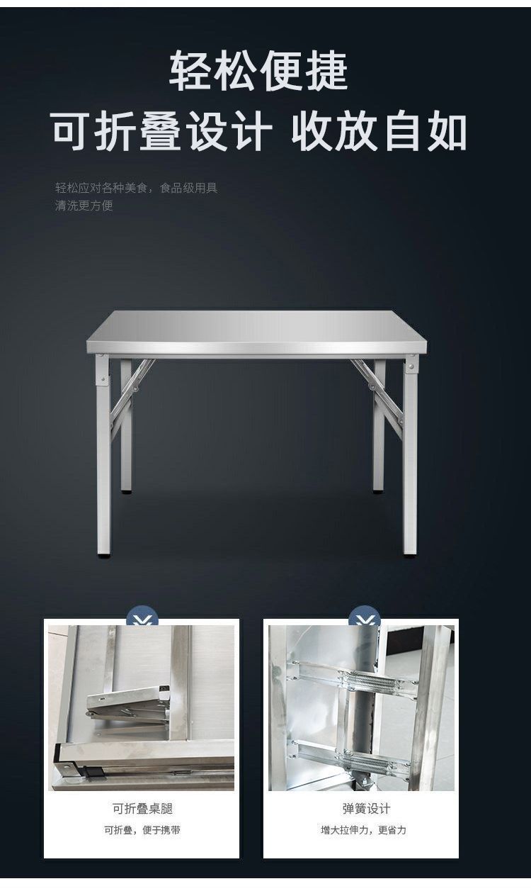 가정용 기숙사 야외 학습 및 식사를위한 두꺼운 스테인레스 스틸 접이식 테이블 작은 사각형 테이블 바베큐 테이블 상업용 스톨 휴대용스토어 가기