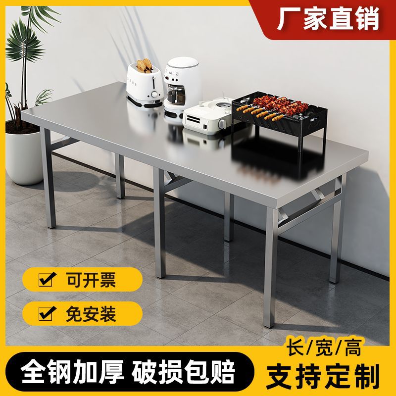 가정용 기숙사 야외 학습 및 식사를위한 두꺼운 스테인레스 스틸 접이식 테이블 작은 사각형 테이블 바베큐 테이블 상업용 스톨 휴대용