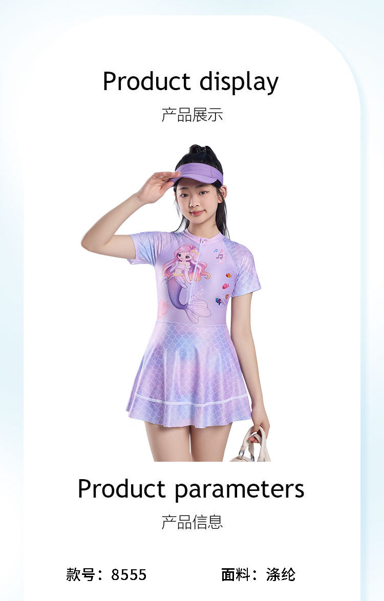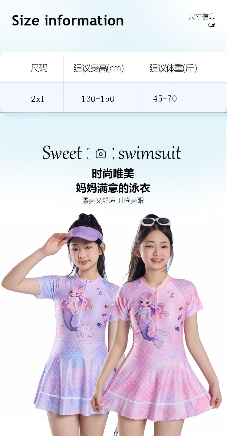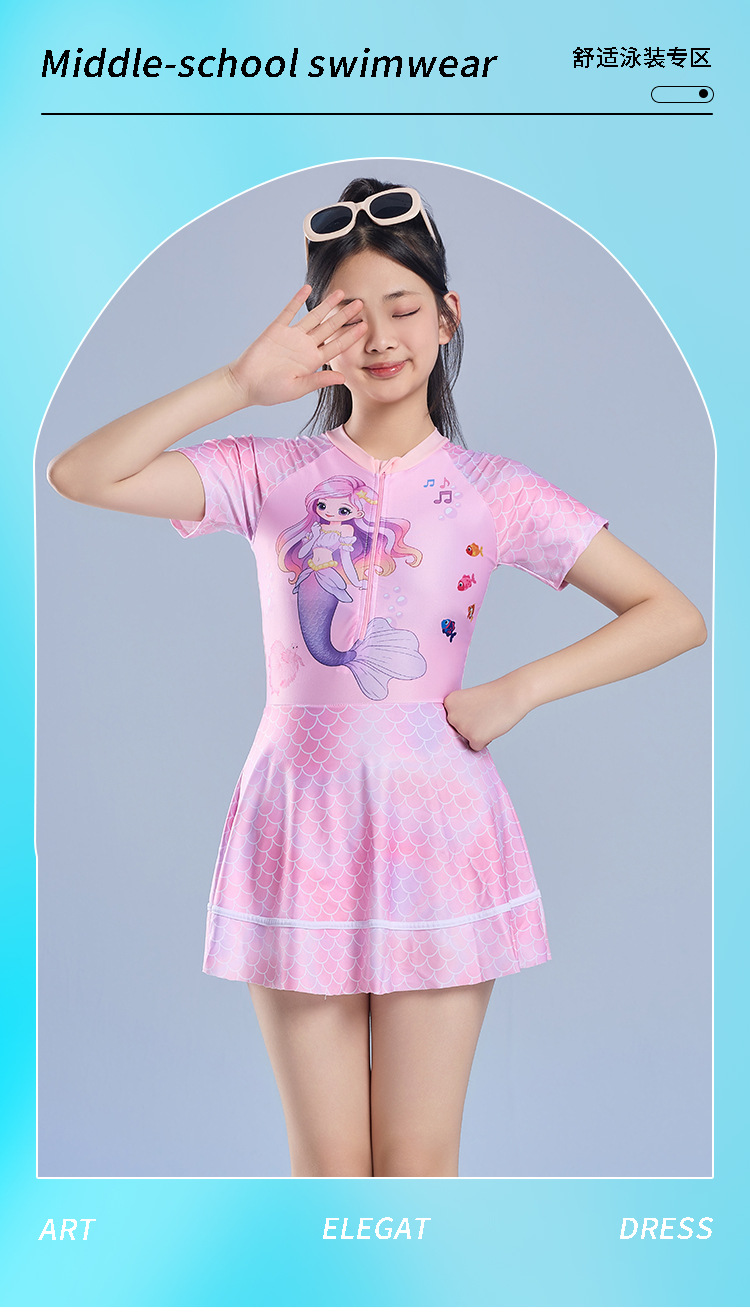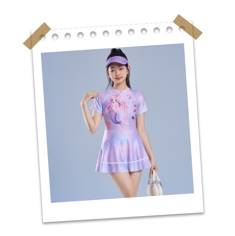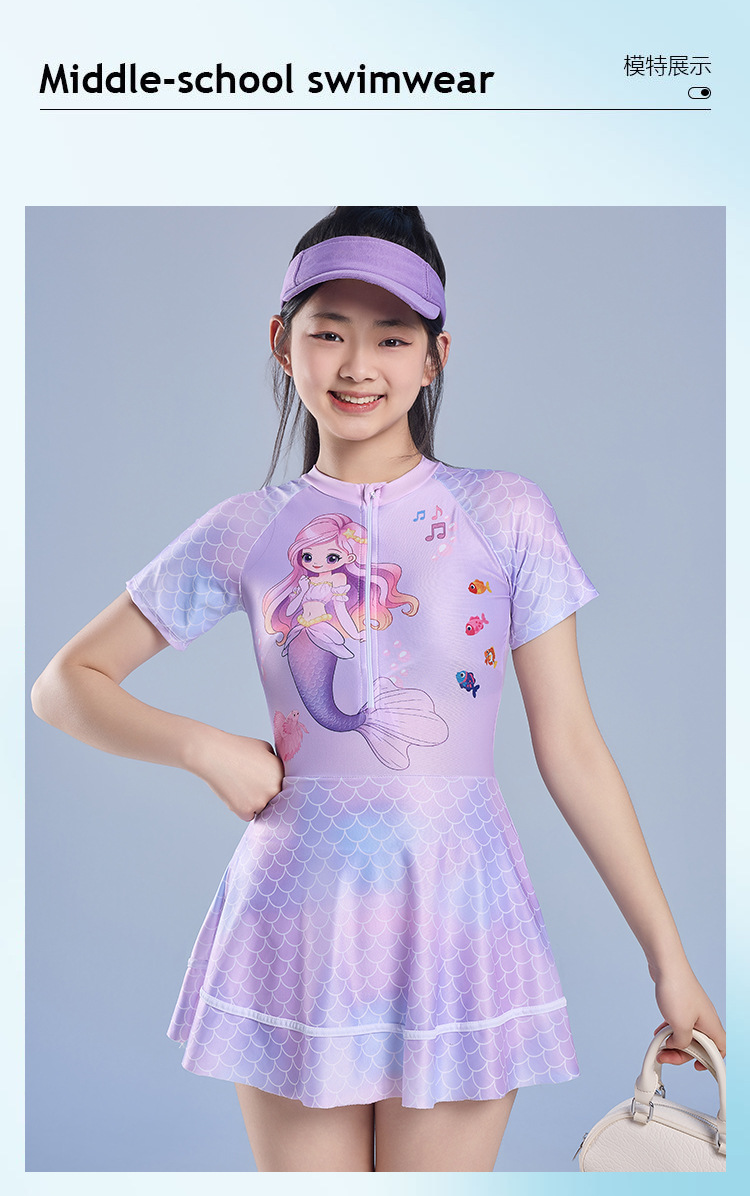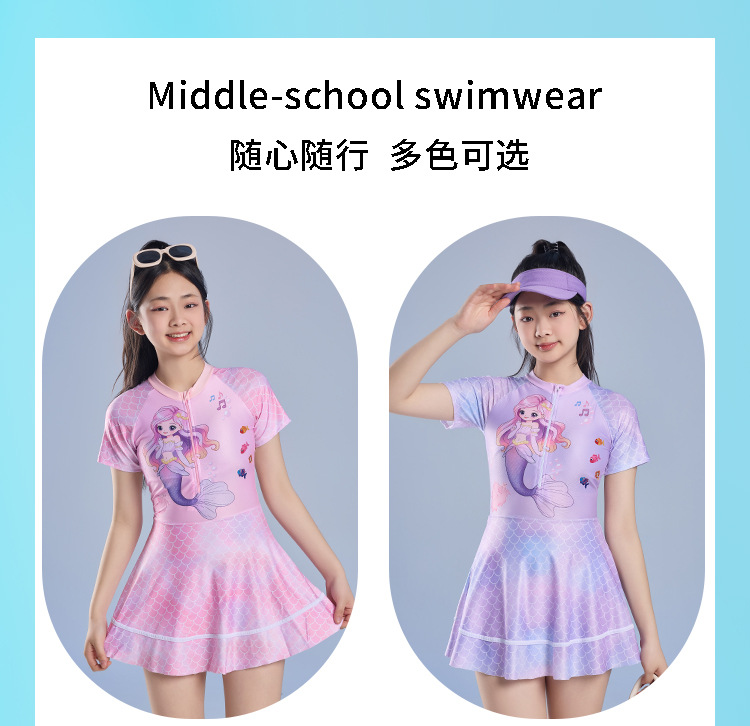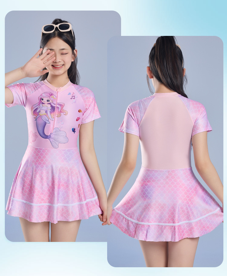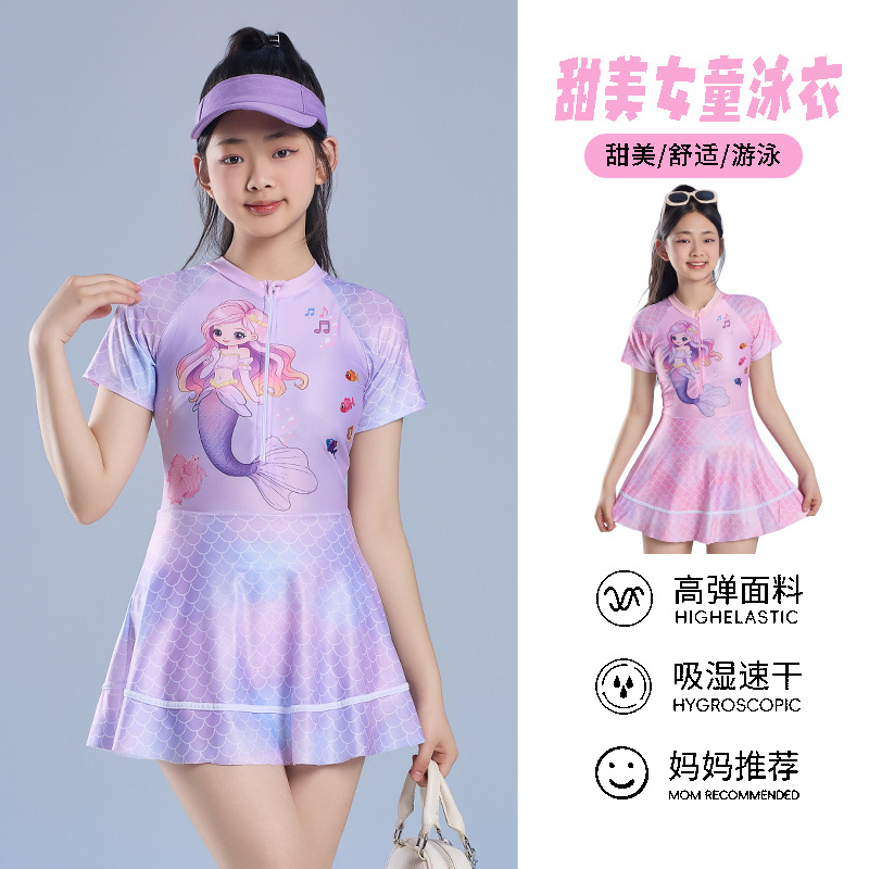 어린이 수영복 소녀 원피스 수영복 2025 새로운 인어 속건성 자외선 차단 수영복 귀여운 학생 수영복