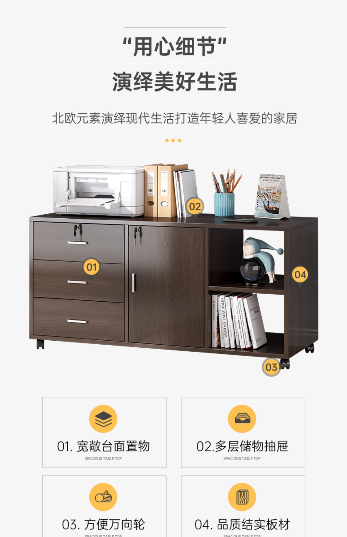 사무실 캐비닛 책상 아래 파일 캐비닛 잠금 장치가 있는 목재 사이드 캐비닛 사무실 캐비닛 프린터 서랍 캐비닛 보관 캐비닛 낮은 캐비닛스토어 가기