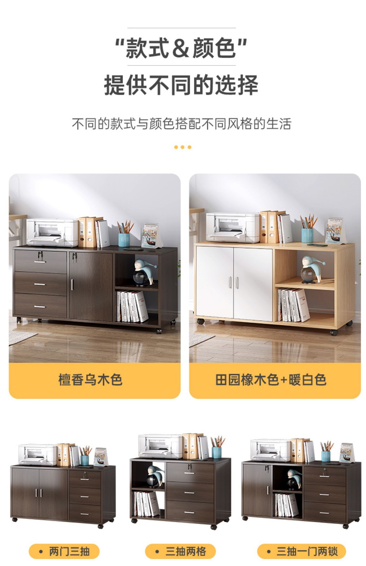 사무실 캐비닛 책상 아래 파일 캐비닛 잠금 장치가 있는 목재 사이드 캐비닛 사무실 캐비닛 프린터 서랍 캐비닛 보관 캐비닛 낮은 캐비닛