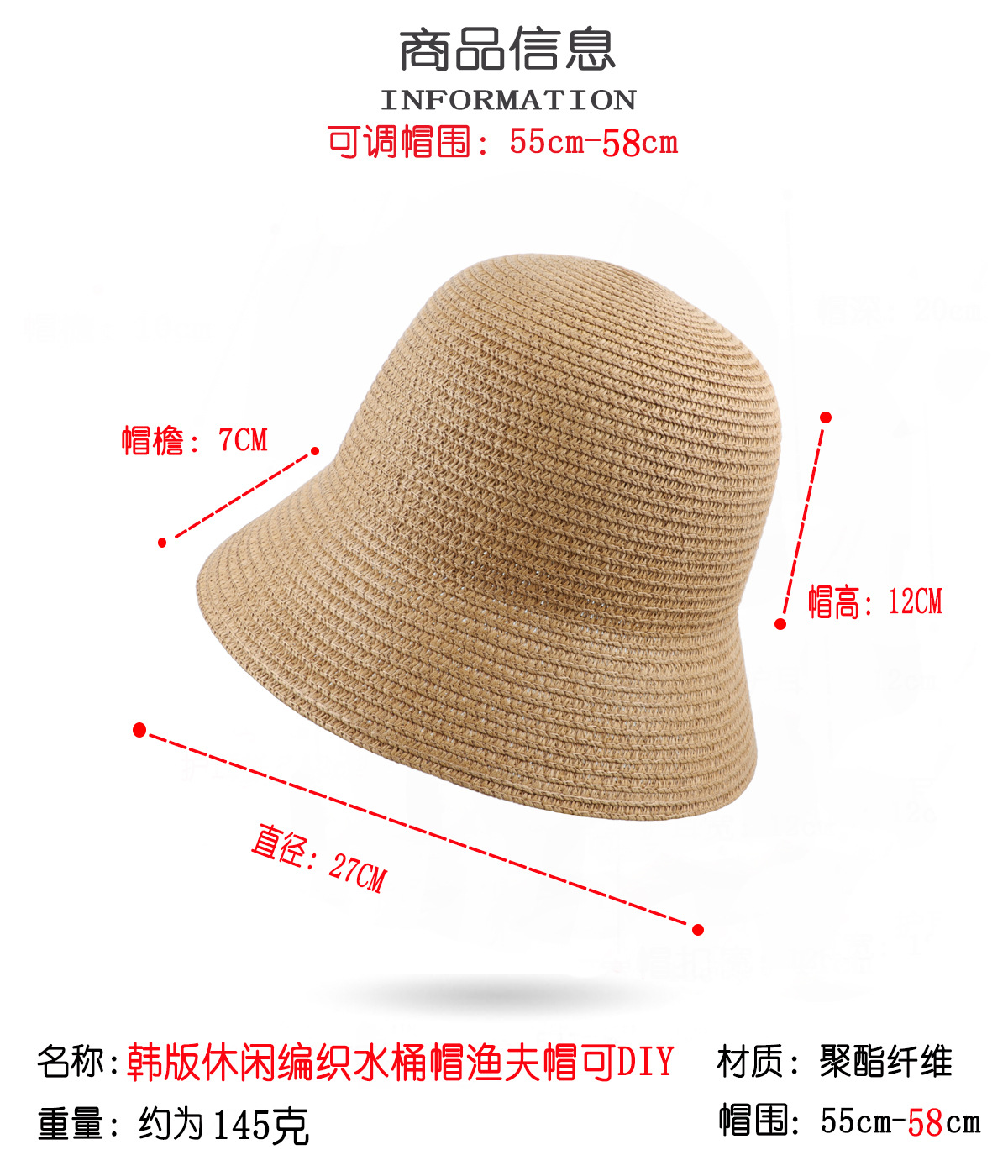 라이브 방송 인기 한국 여름 단색 다용도 크로스보더 캐주얼 우븐 버킷햇 피셔맨햇 데일리용 태양모자스토어 가기