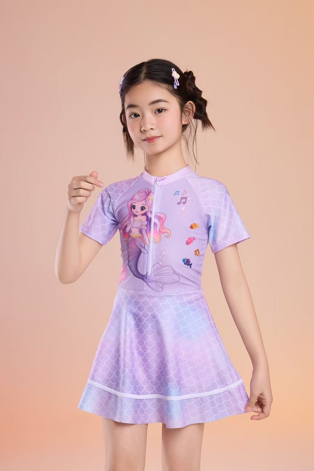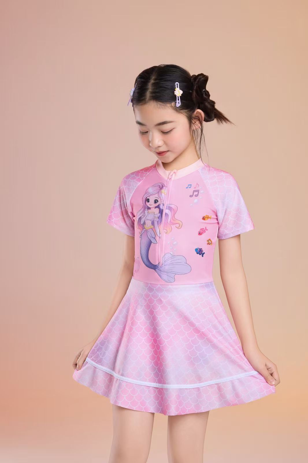 어린이 수영복 소녀 소형 및 중형 어린이 원피스 인어 수영복 2025 새로운 귀여운 소녀 자외선 차단제 속건성 수영복