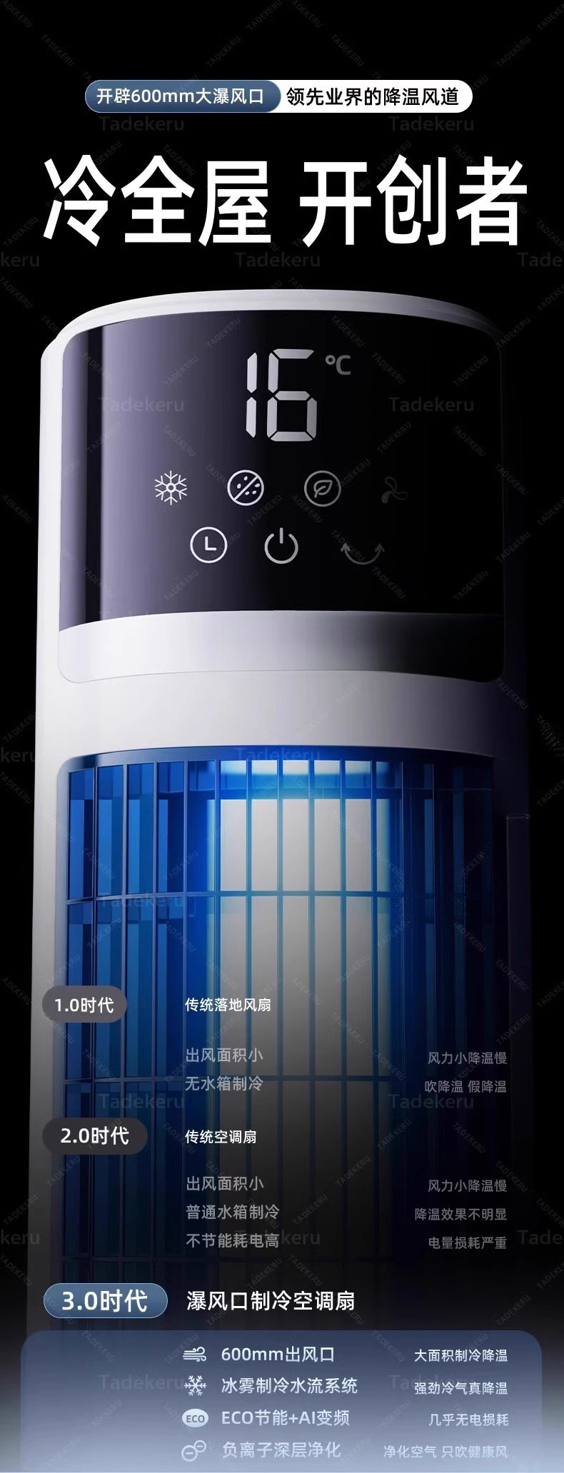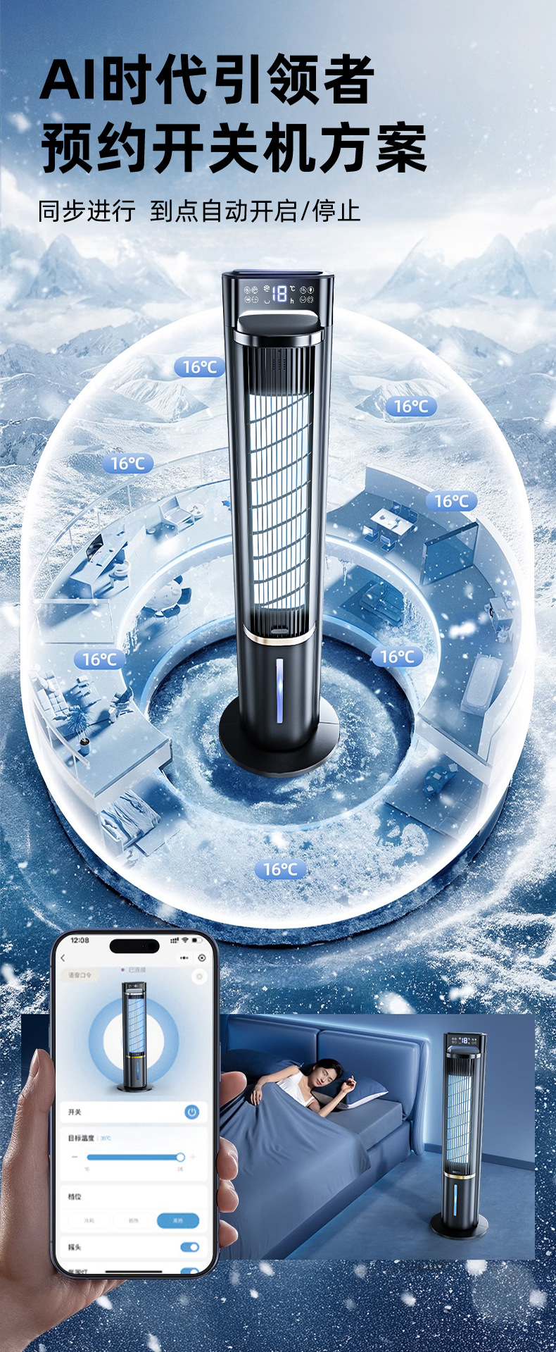 • [2025년 신산업 최고급 장비] 집 전체 냉방, 전자동 쉐이킹 헤드, 음이온 찬 바람, 건조함 없음.