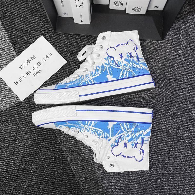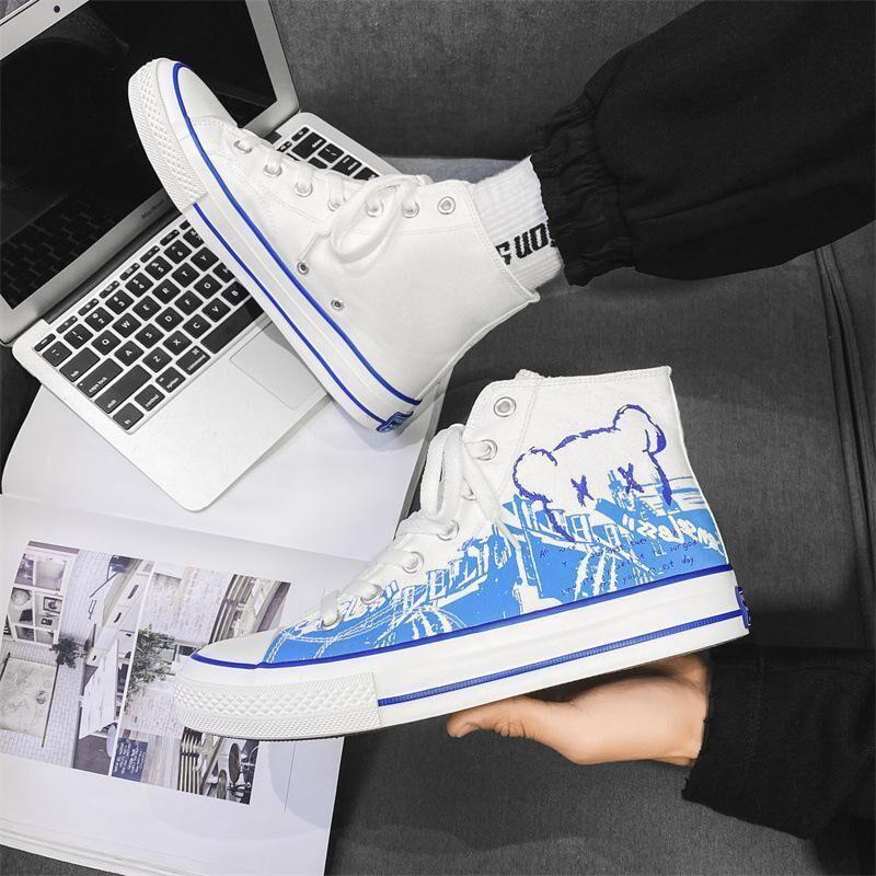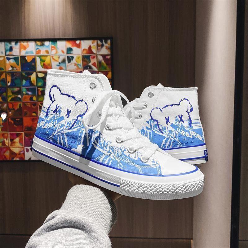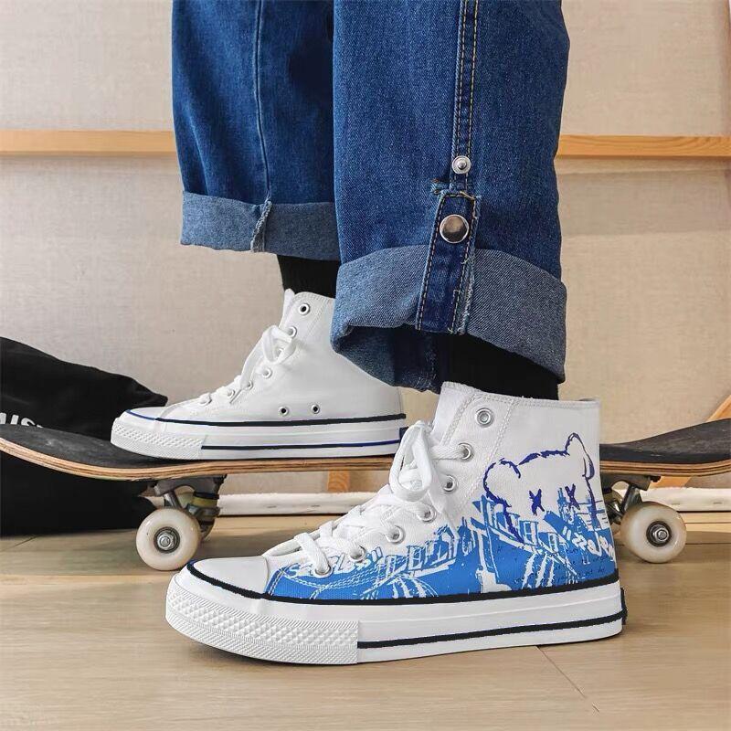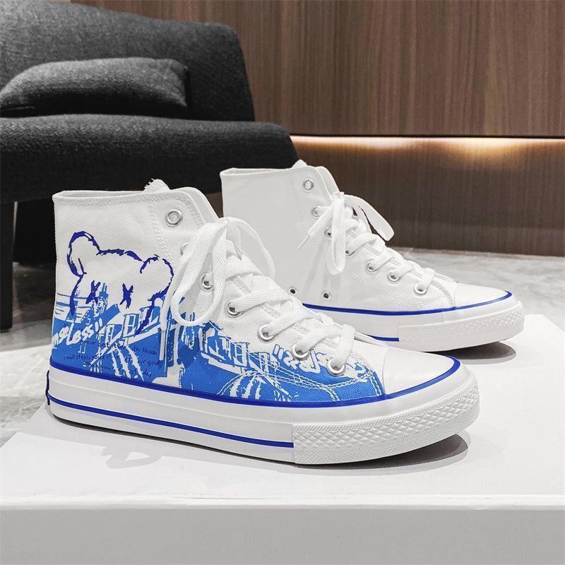 가을 남성 신발 2025 새로운 하이 탑 캔버스 신발 남성 유행 다목적 낙서 유행 신발 학생 캐주얼 운동화스토어 가기