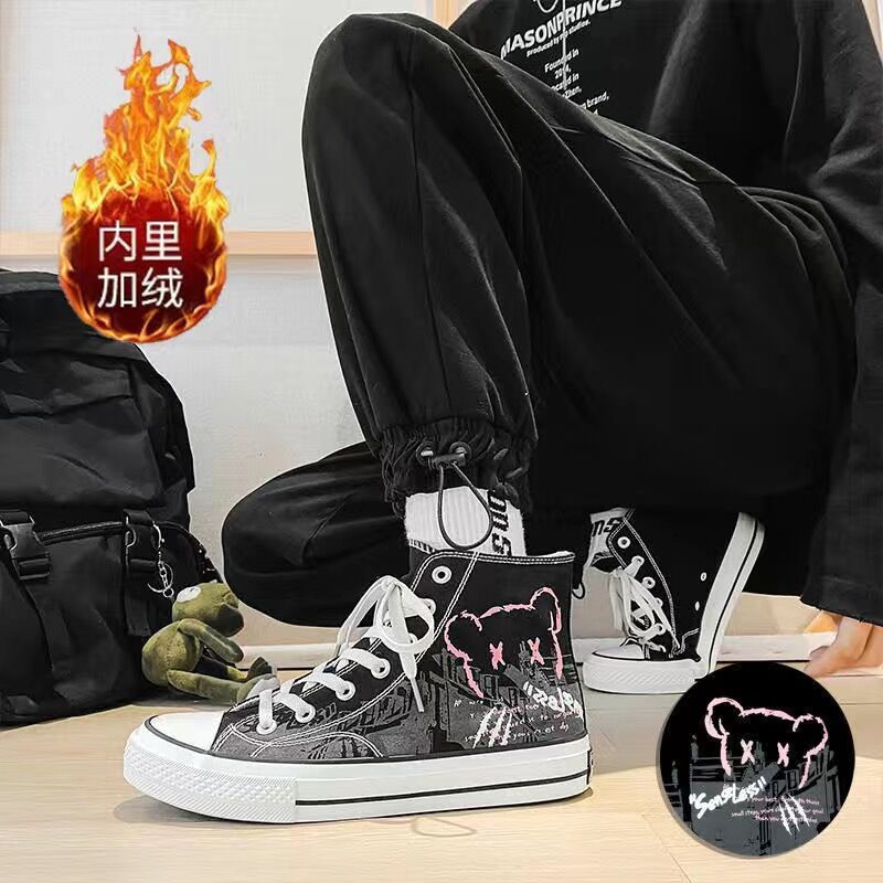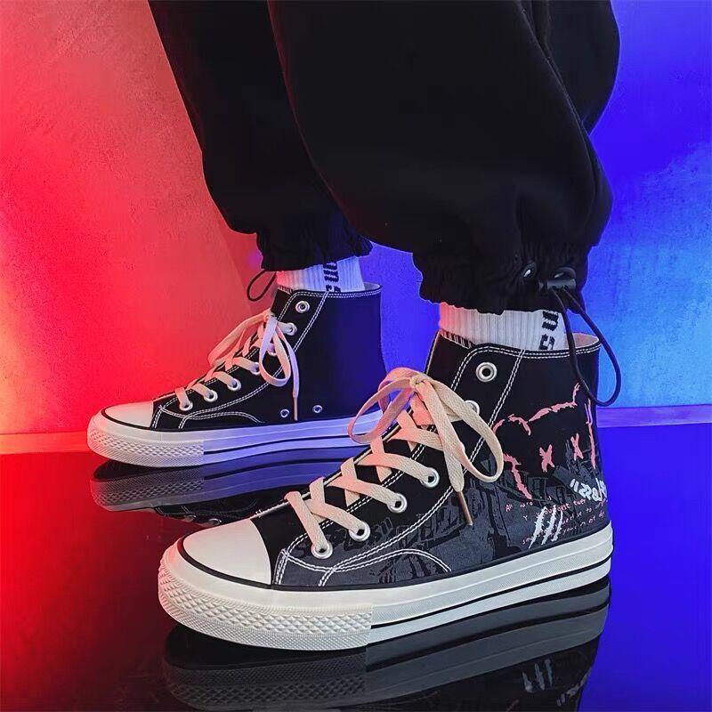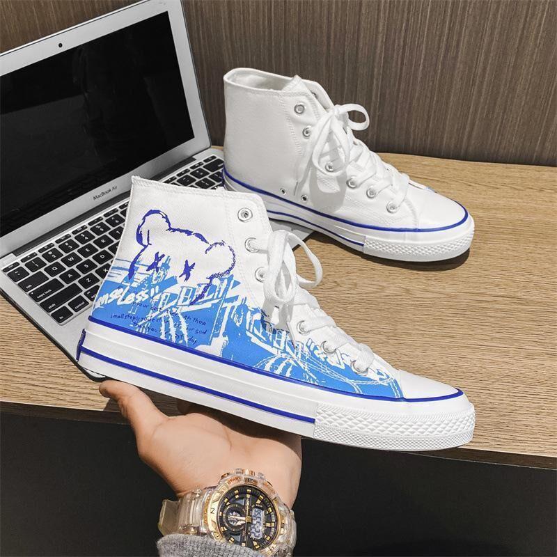 가을 남성 신발 2025 새로운 하이 탑 캔버스 신발 남성 유행 다목적 낙서 유행 신발 학생 캐주얼 운동화