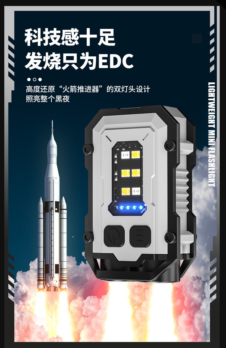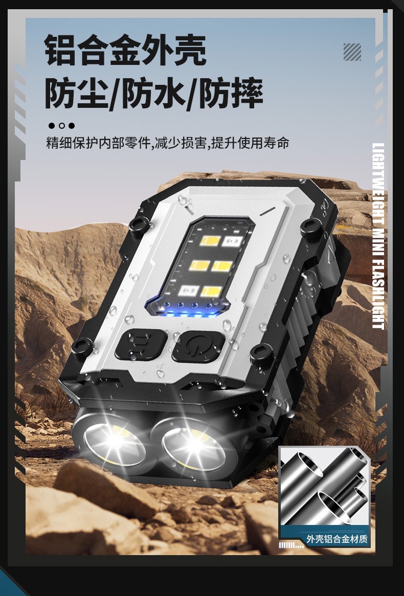 국경 간 새로운 야외 강한 빛 다기능 키 체인 빛 충전식 작업 빛 높은 밝은 경고 빛 손전등 클립 캡 빛