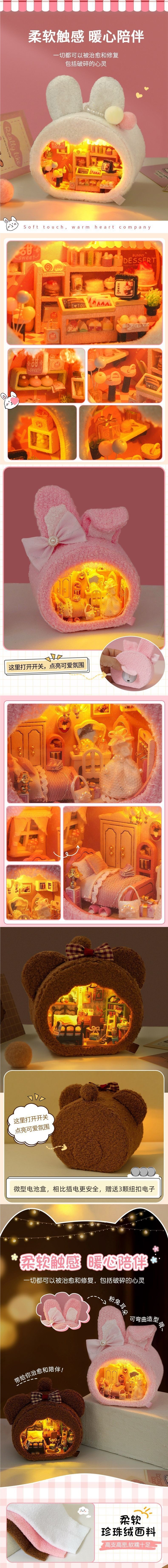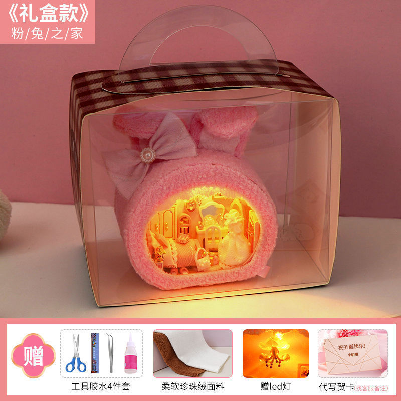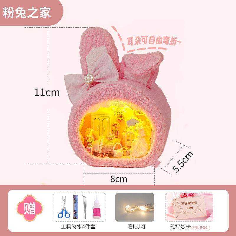 • [선물 상자 모델] 핑크 토끼 집 + 공업용 접착제 + 램프 + 선물 상자 ☆