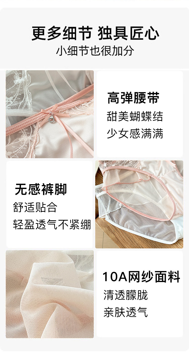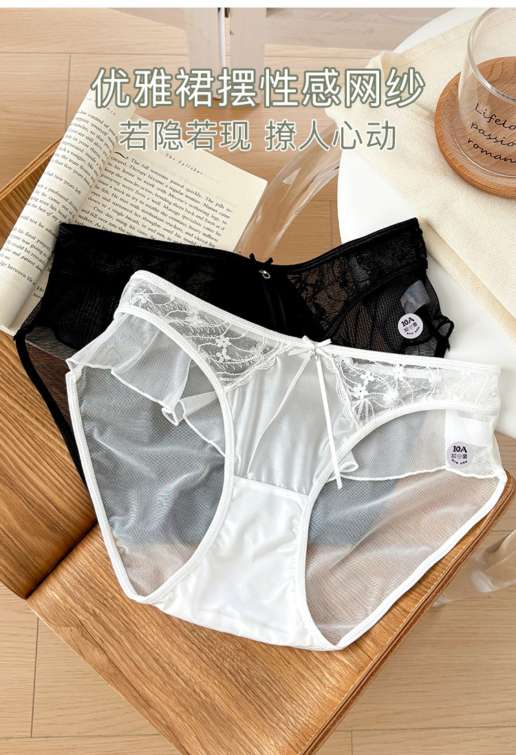 달콤한 발레 우아한 스커트 순수한 욕망 레이스 팬티 여성 10A 순수 코튼 항균 로우 허리 메쉬 여성 팬티
