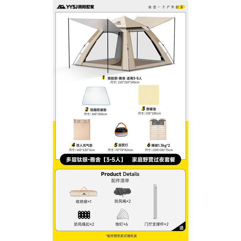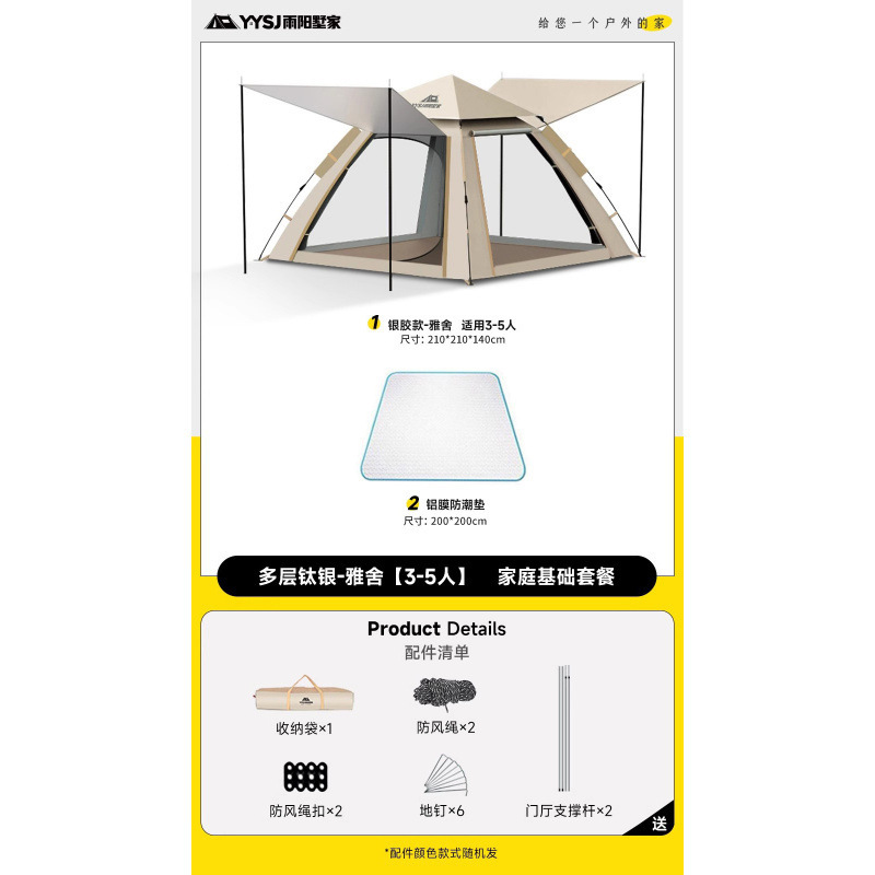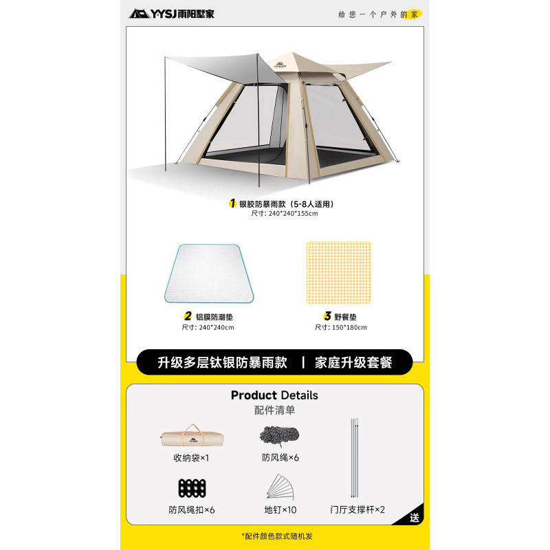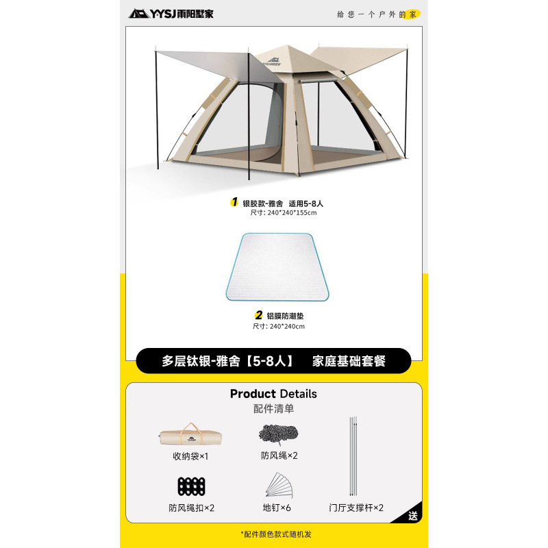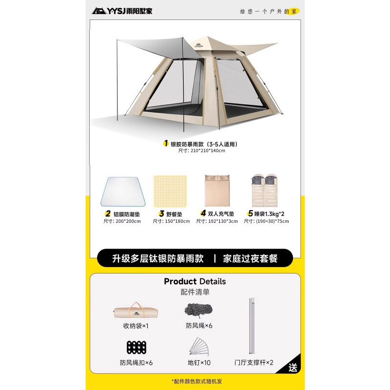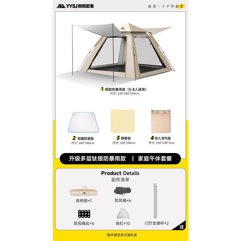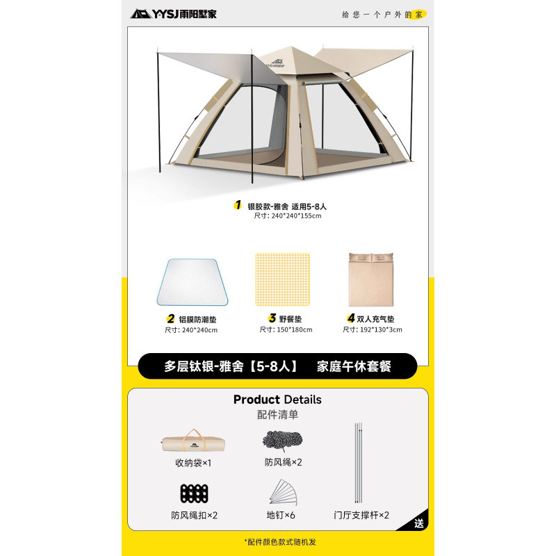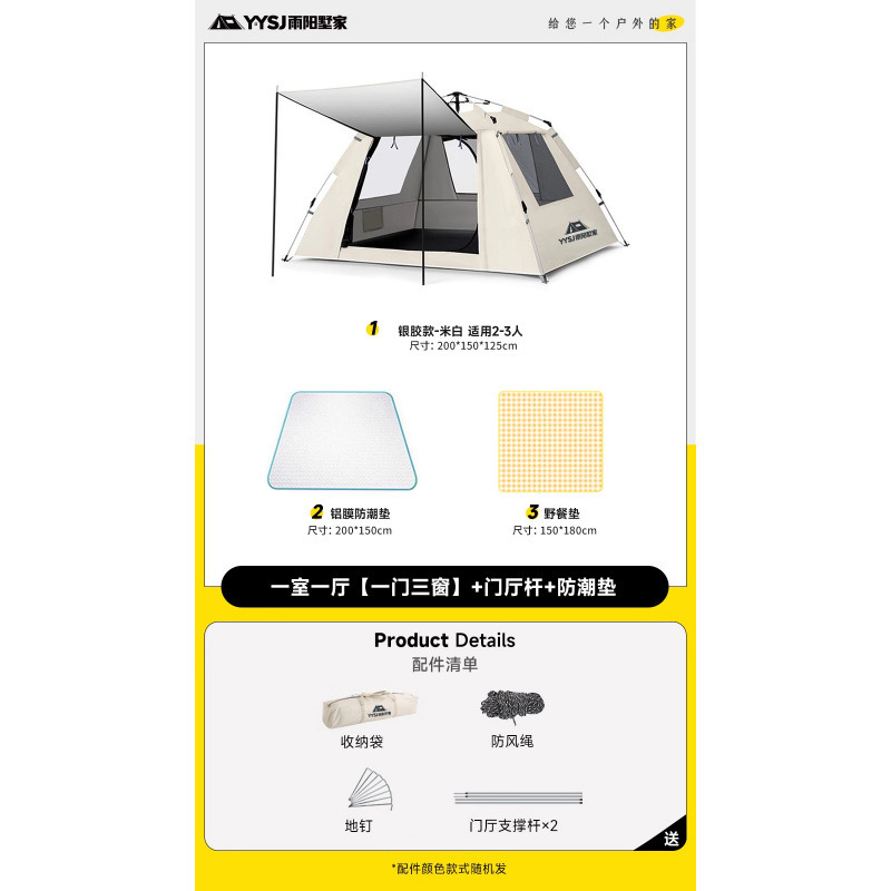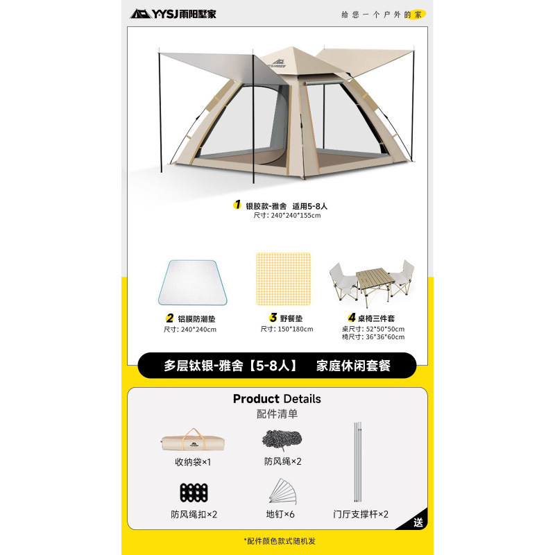 • 특대형 사이즈 [문 2개, 창문 2개, 두꺼운 자외선 차단] + 방습 매트 + 피크닉 매트 + 더블 테이블과 의자