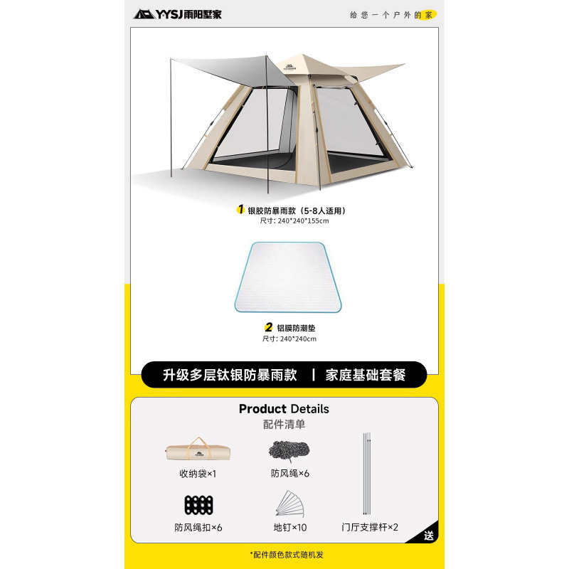 야외 캠핑용 텐트, 야간 비 방지, 야외용 두꺼운 캠핑 장비, 자동 접이식, 휴대용, 원클릭 개폐
