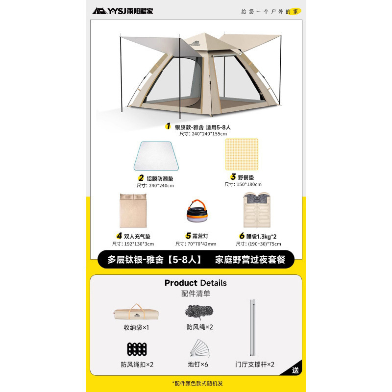 • XL [업그레이드된 폭우 방지 - 누수 시 전액 환불] - 하룻밤 캠핑 세트