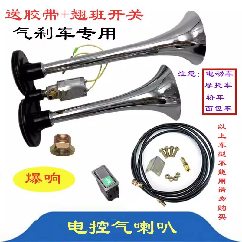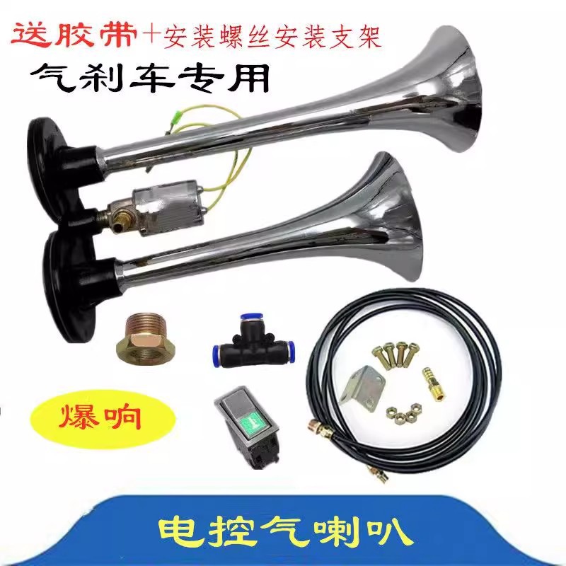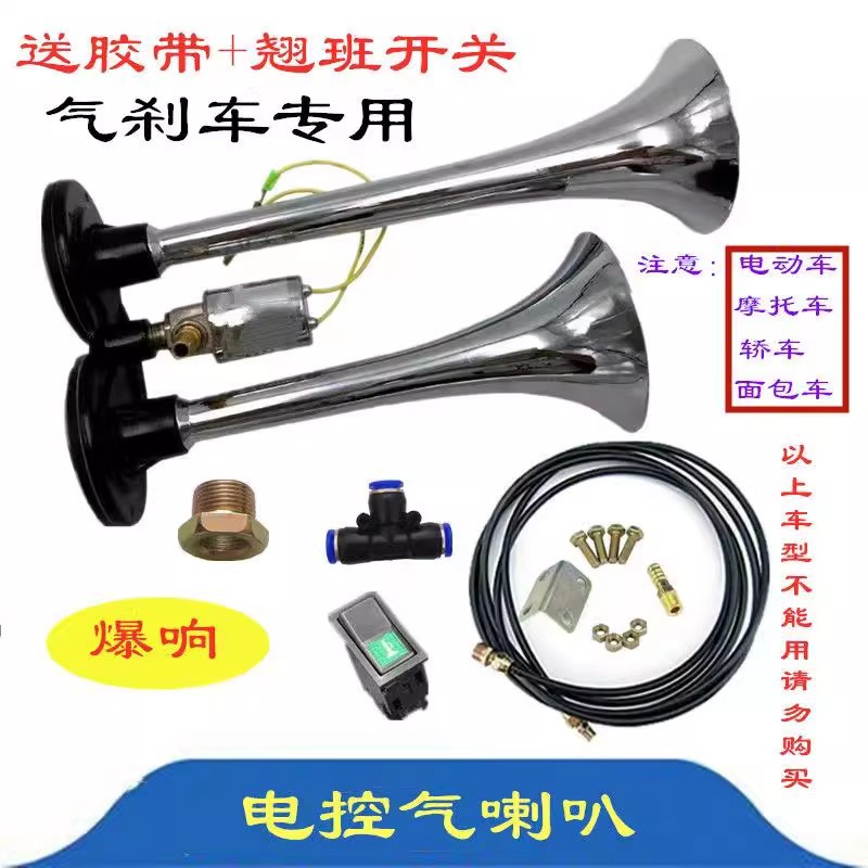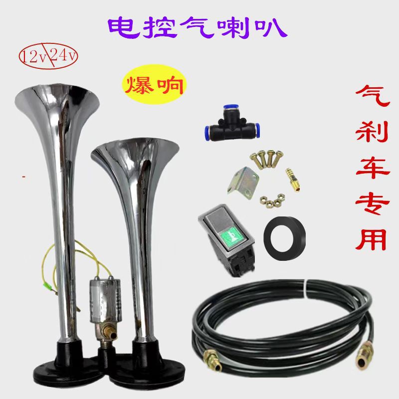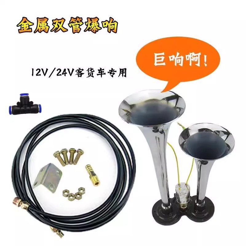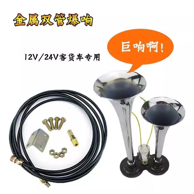 트럭 에어 경적 12v24v 버스 고음 경적 튜브 경적 수정 금속 이중 튜브 폭발 전자 제어 에어 경적스토어 가기