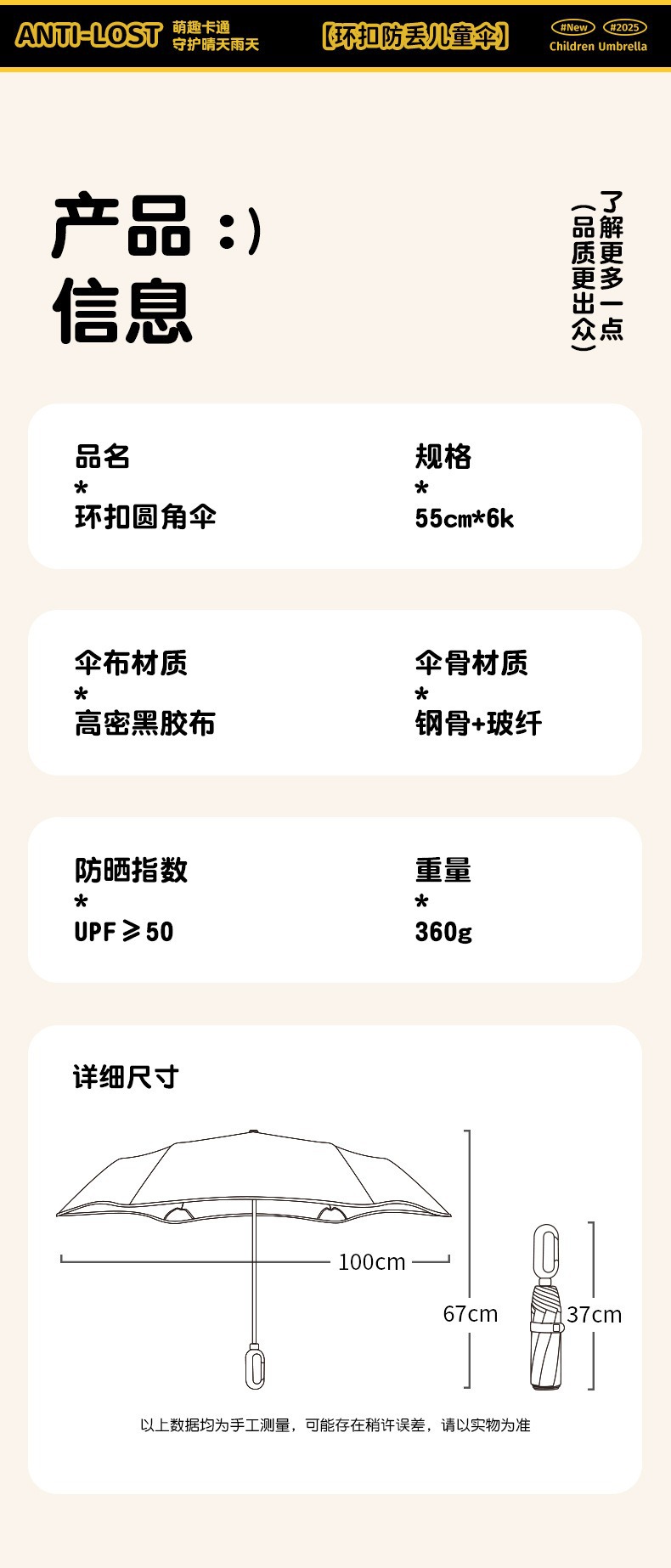70% off 우산 귀여운 링 버클 어린이 우산 멋진 디자인 초등학생용 남녀공용 비와 햇빛 모두 사용 가능한 우산스토어 가기