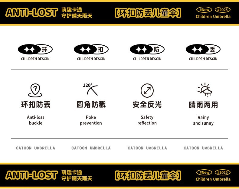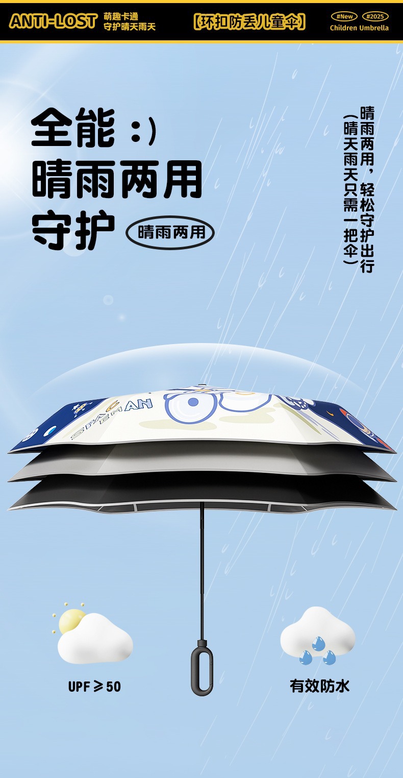 70% off 우산 귀여운 링 버클 어린이 우산 멋진 디자인 초등학생용 남녀공용 비와 햇빛 모두 사용 가능한 우산