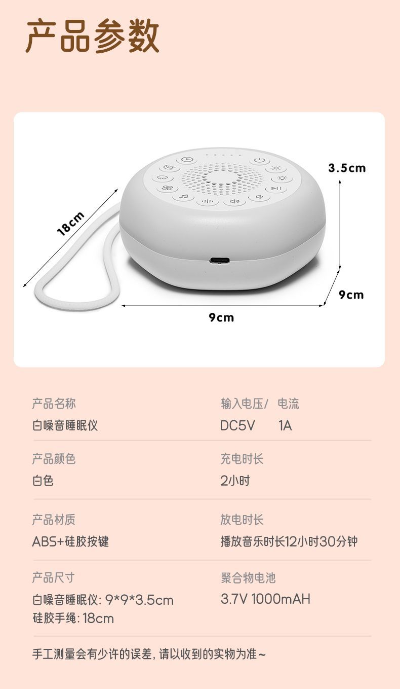 跨境新款睡眠仪白噪音便携安抚婴儿入哄睡机音乐夜灯助眠睡眠仪