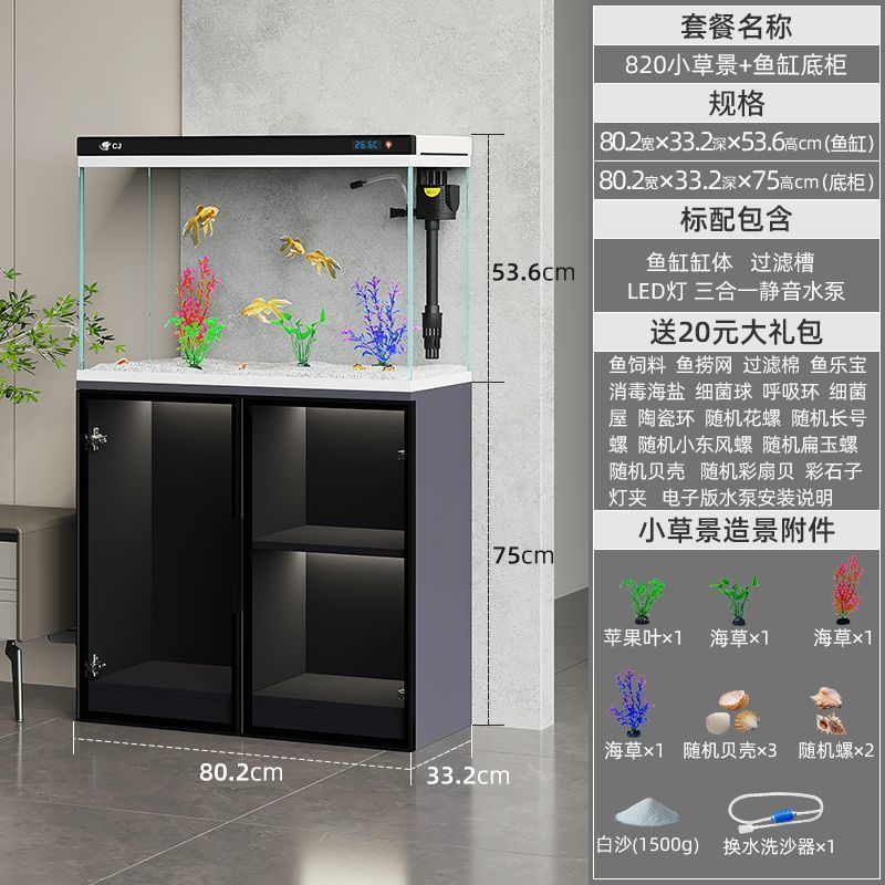• 800 스마트 이탈리안 수조 + 그레이 캐비닛 + 수생 식물 풍경 선물 팩