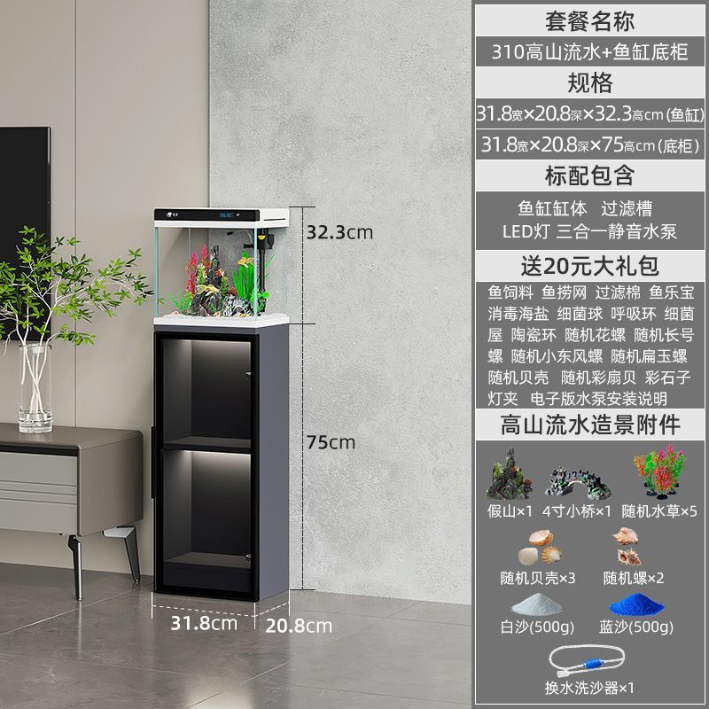 • 800 스마트 이탈리안 어항 + 그레이 캐비닛 + 산과 흐르는 물 선물 패키지