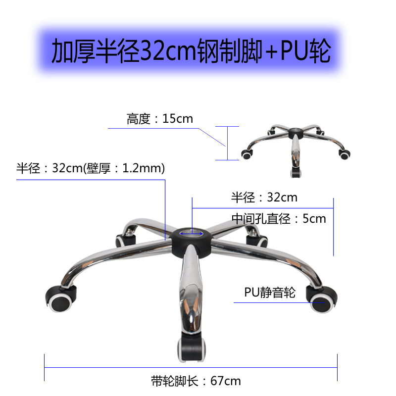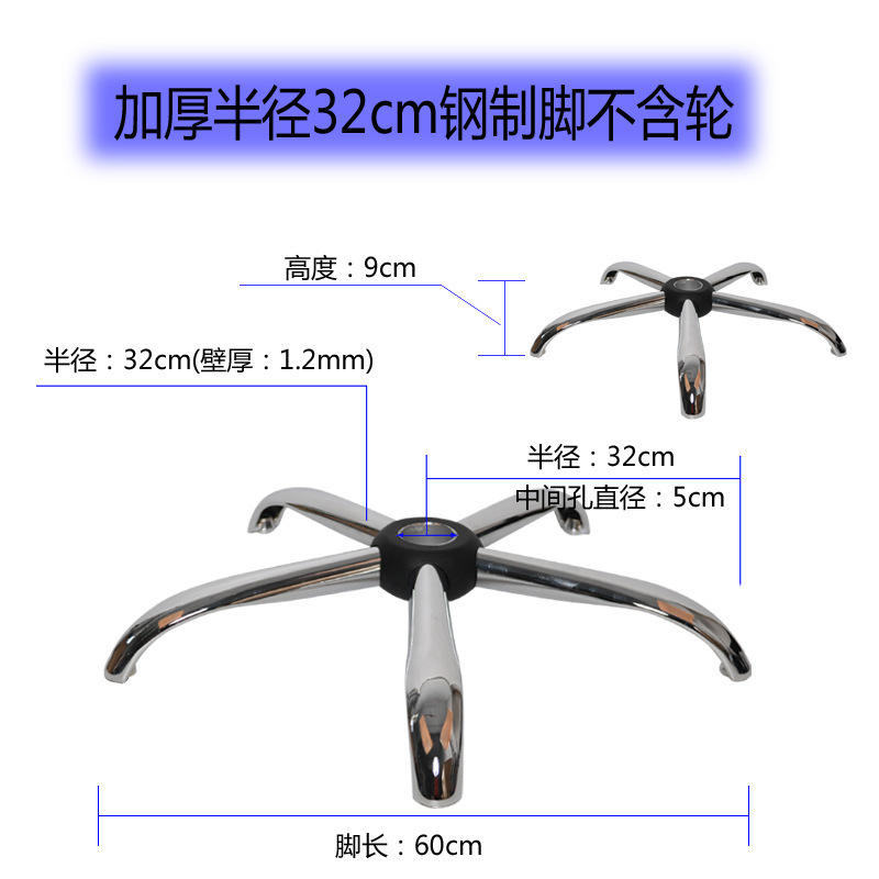 의자 발 회전 의자 액세서리 두꺼운 의자 발 섀시 전기 도금 5성 삼각대 컴퓨터 의자 베이스 스틸 5성