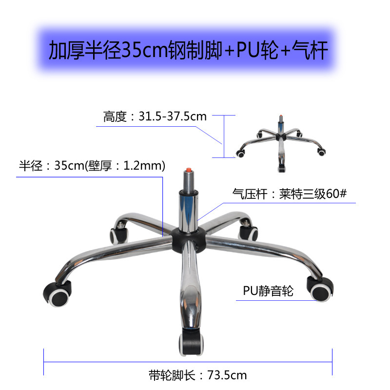 의자 발 회전 의자 액세서리 두꺼운 의자 발 섀시 전기 도금 5성 삼각대 컴퓨터 의자 베이스 스틸 5성스토어 가기