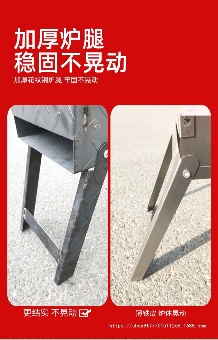 두꺼운 바베큐 스토브 접이식 철판 바베큐 스탠드 야외 꼬치 상업용 오븐 야외 숯불 바베큐 오븐스토어 가기