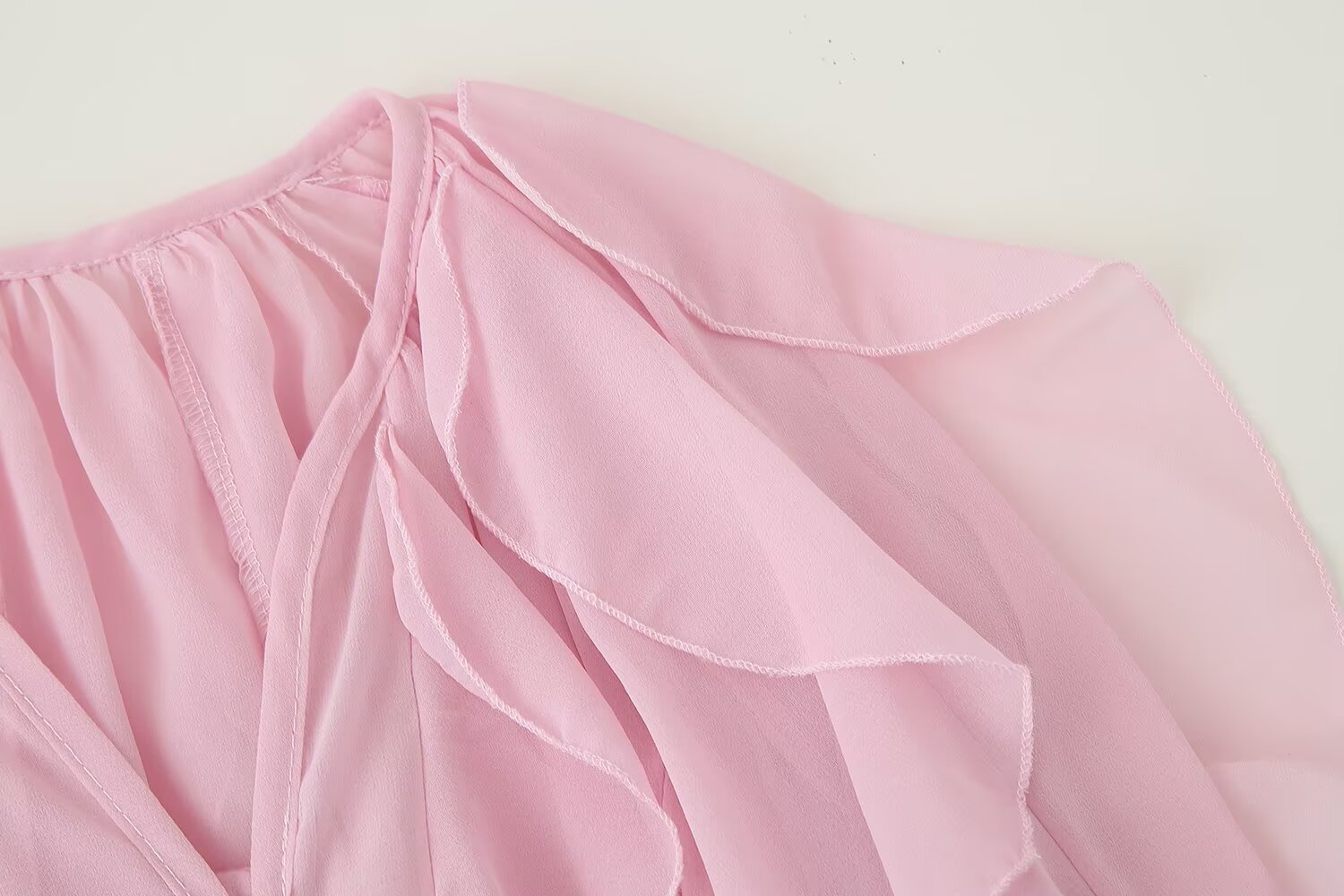 국경 간 신제품 2025 유럽과 미국 스타일의 여성 의류 대외 무역 도매 ZR 스팟 보우 칼라 긴팔 셔츠
