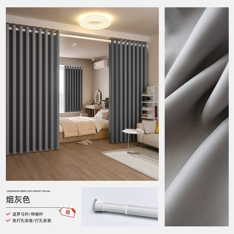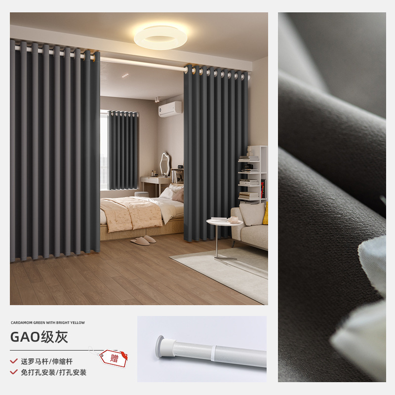 거실에 구멍을 뚫을 필요 없이 완전 암막 커튼과 로마 막대 설치 세트, 2025년 신형 침실 베이 창용 칸막이 차양막스토어 가기
