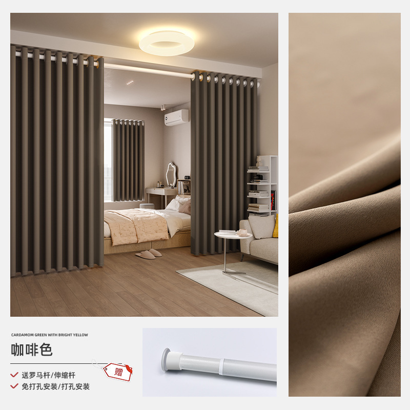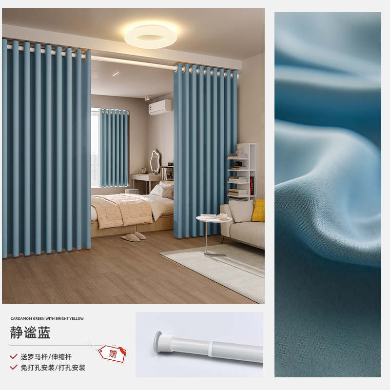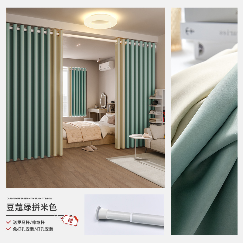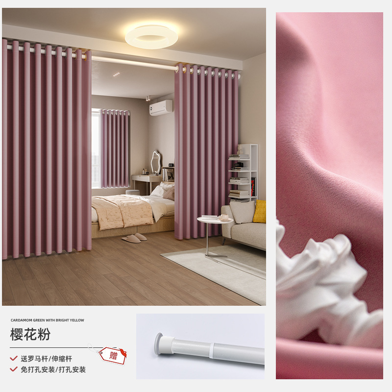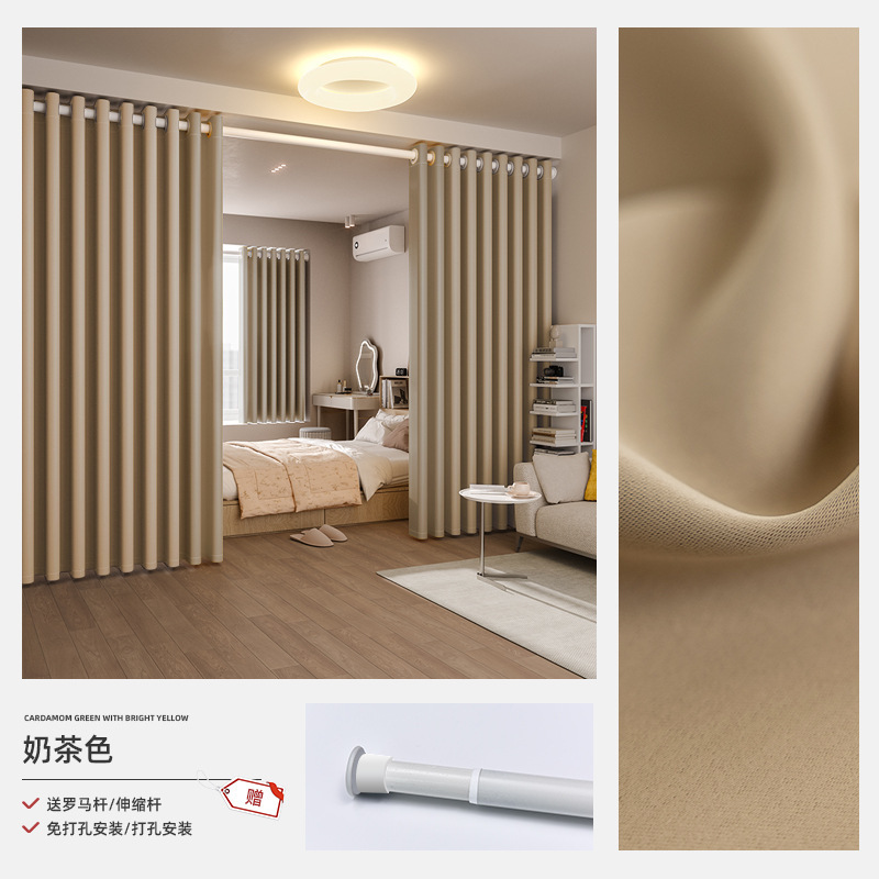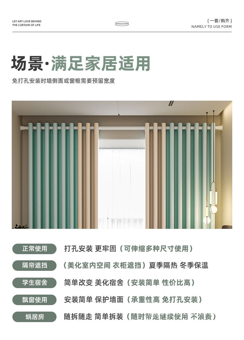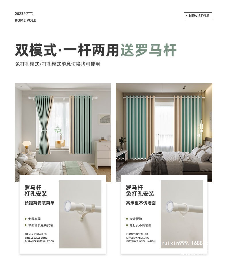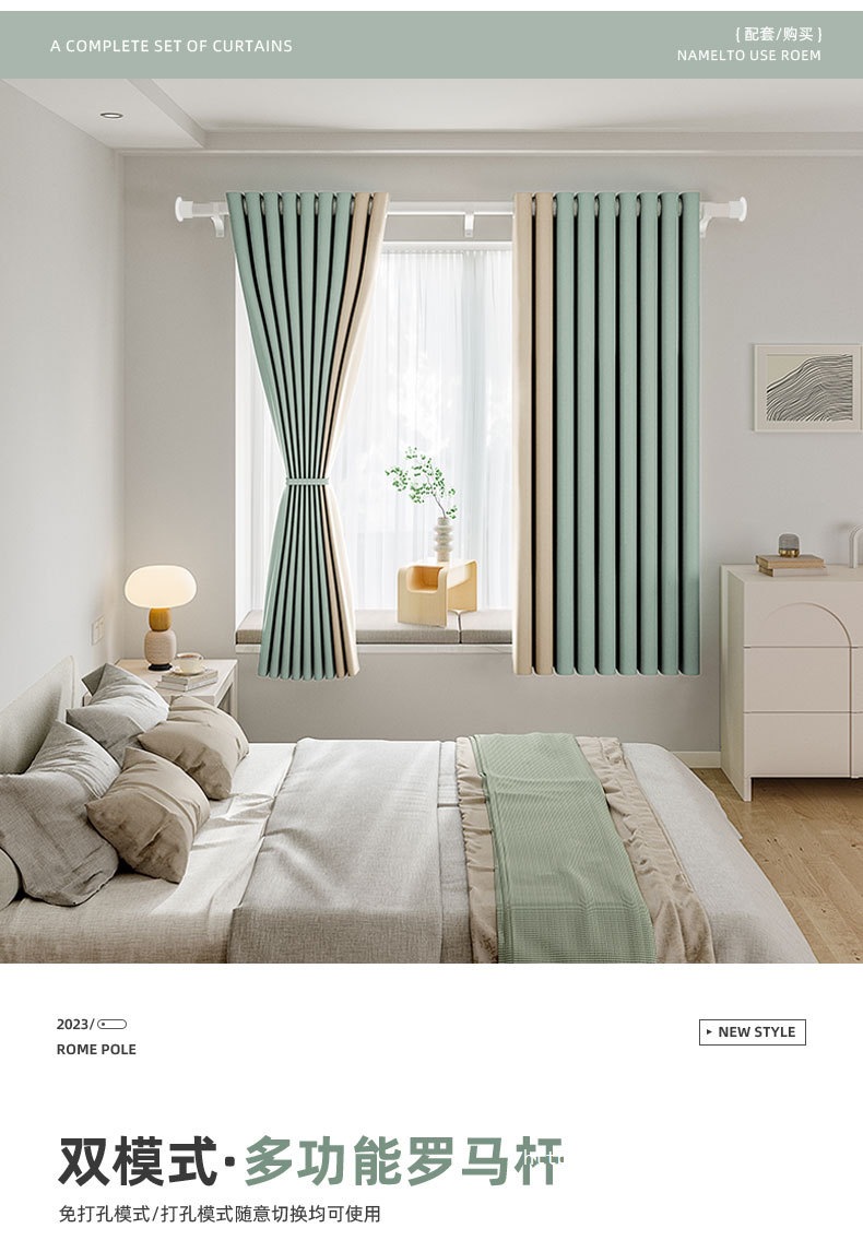 거실에 구멍을 뚫을 필요 없이 완전 암막 커튼과 로마 막대 설치 세트, 2025년 신형 침실 베이 창용 칸막이 차양막