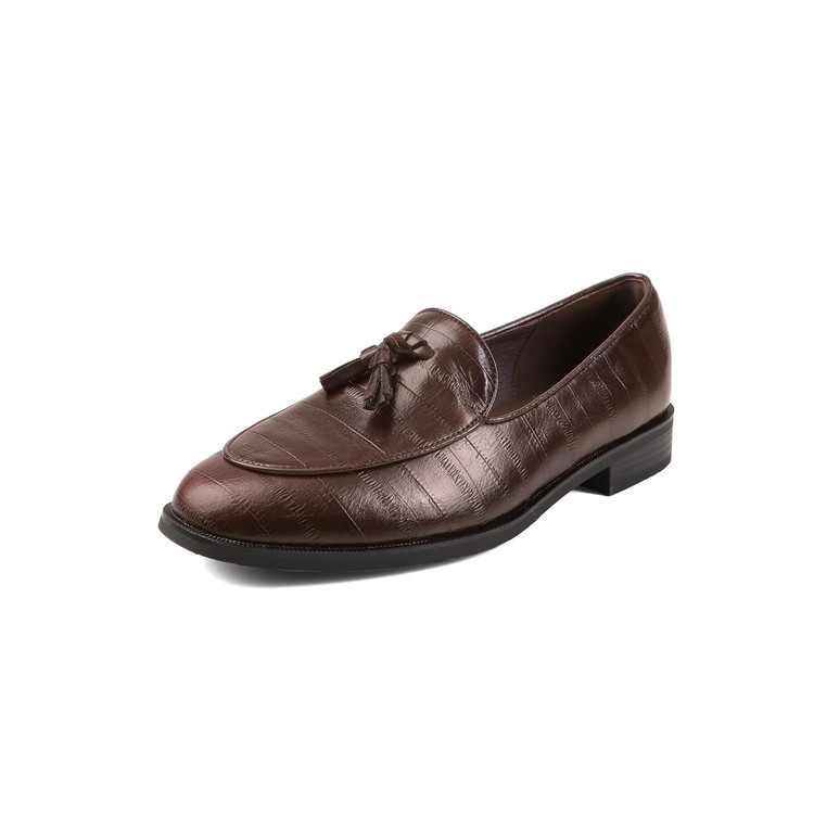 여성용 태슬 로퍼, 가을 겨울 신상품, 천연가죽 라운드토 로우힐, 영국풍 복고풍 딥 슈즈, 여성화스토어 가기