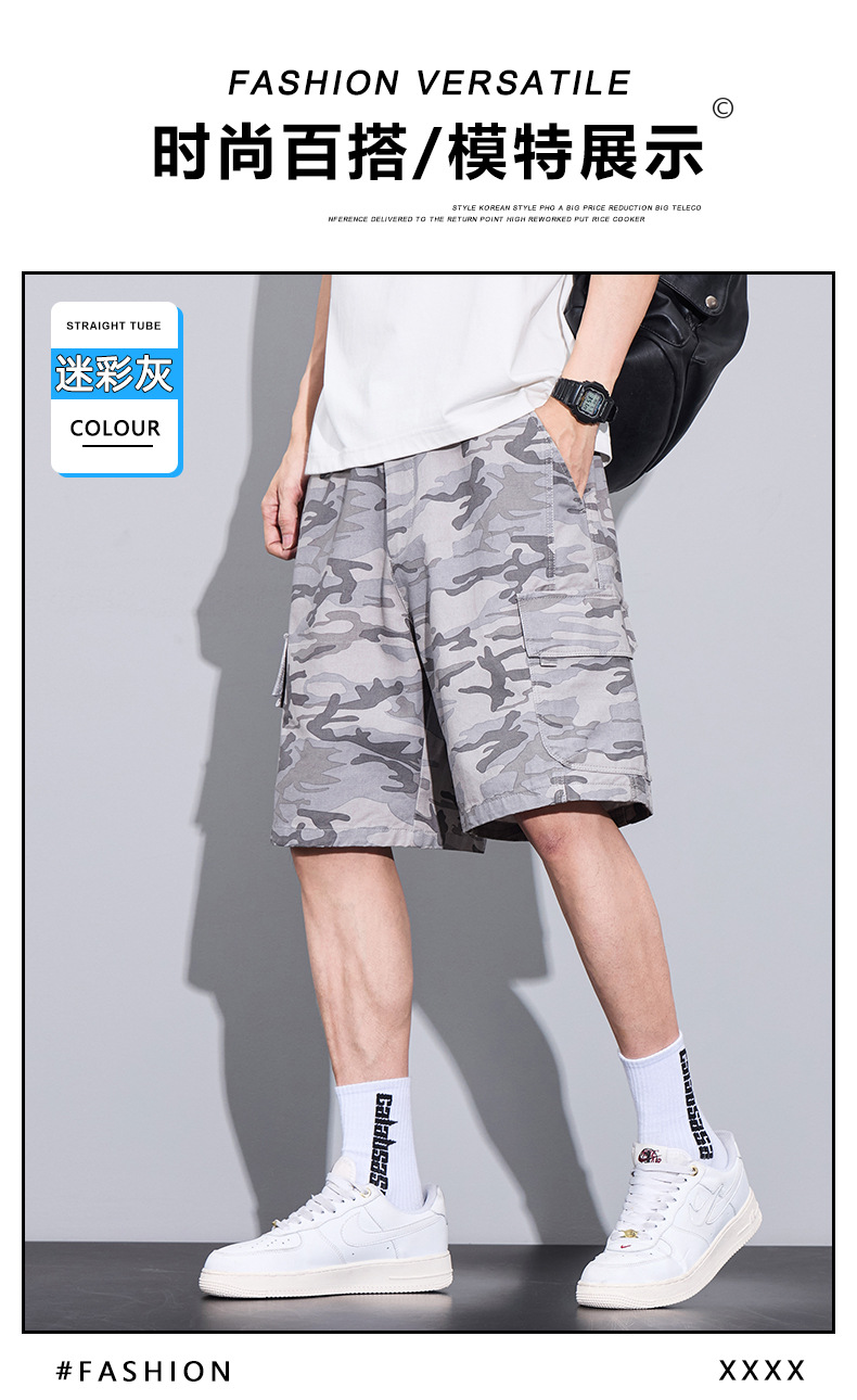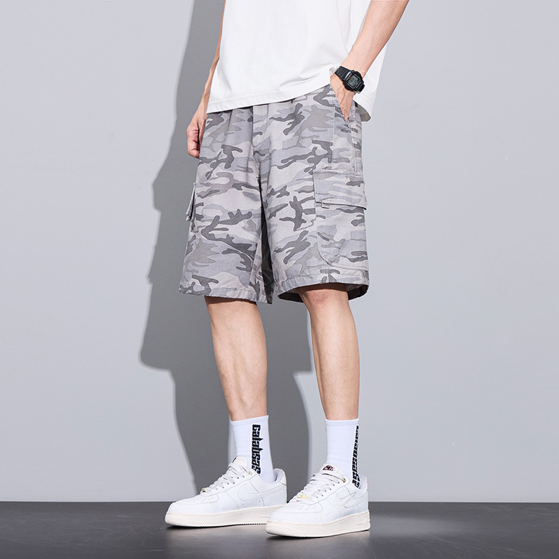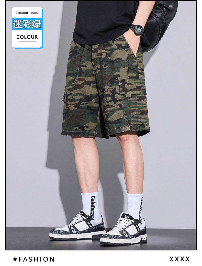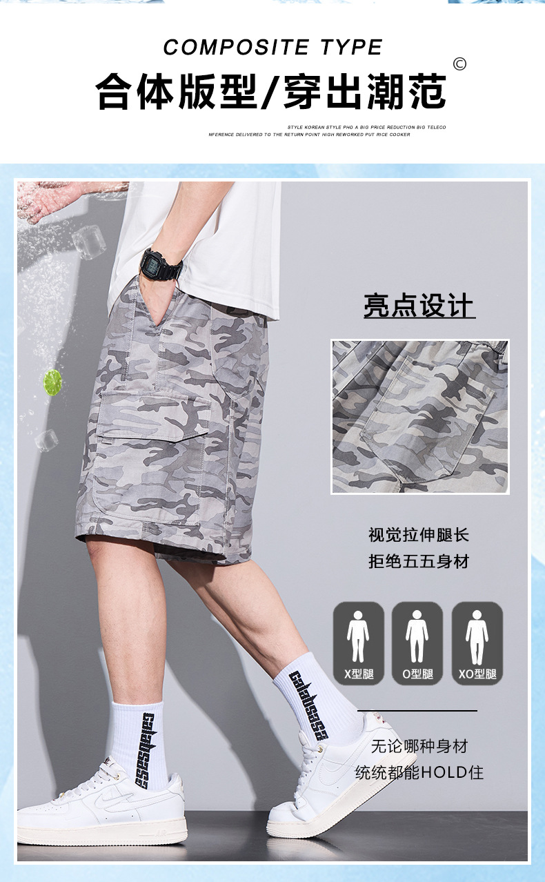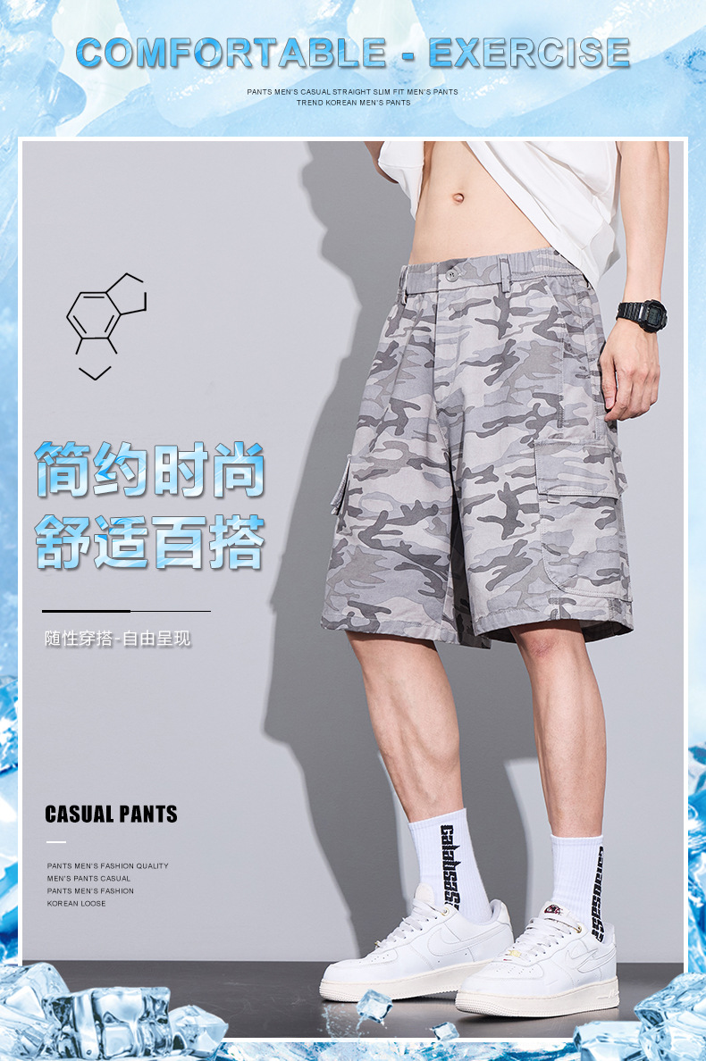 트렌디 브랜드 카모 작업복 반바지 남성 2025 여름 얇은 얼음 실크 스포츠 바지 루즈 캐주얼 아우터 5부 바지스토어 가기