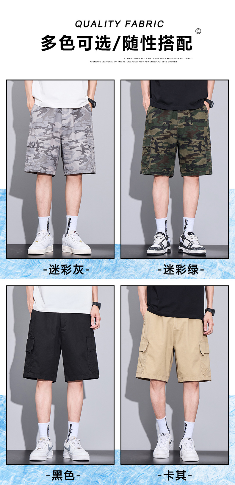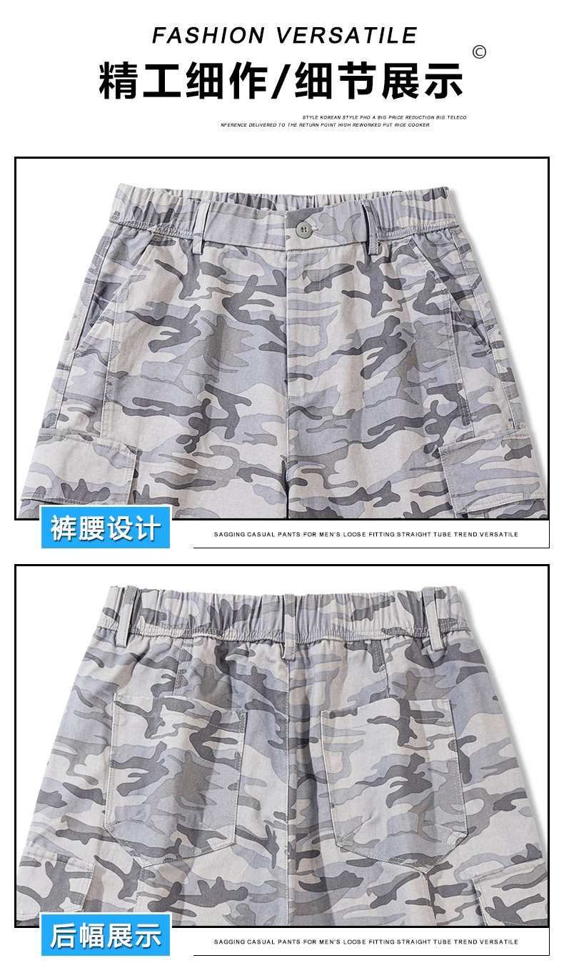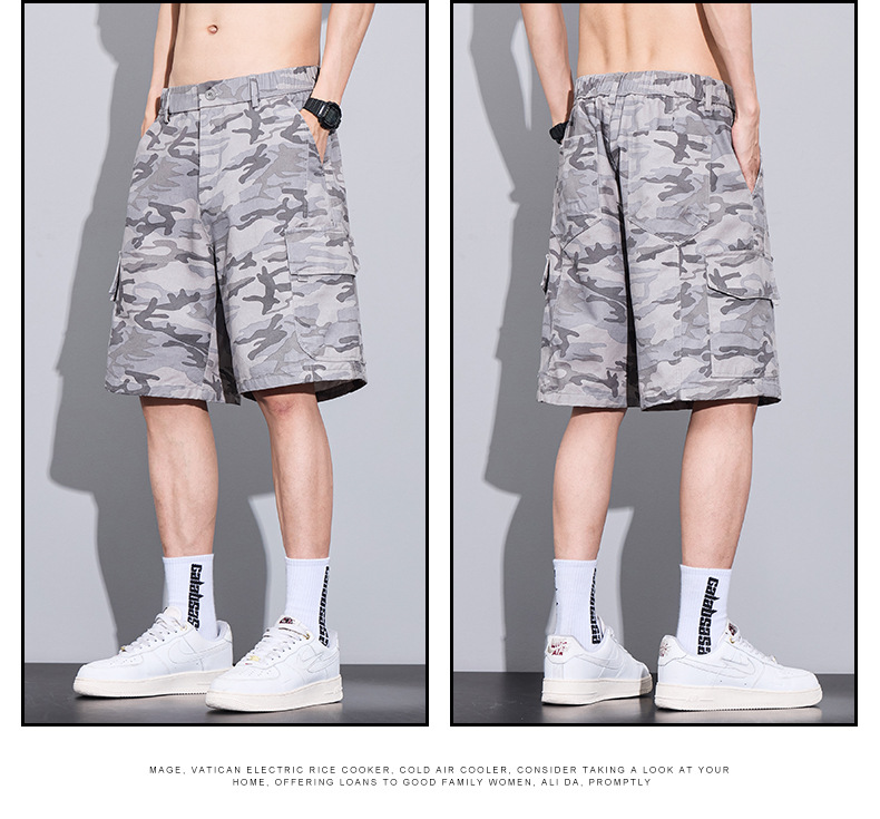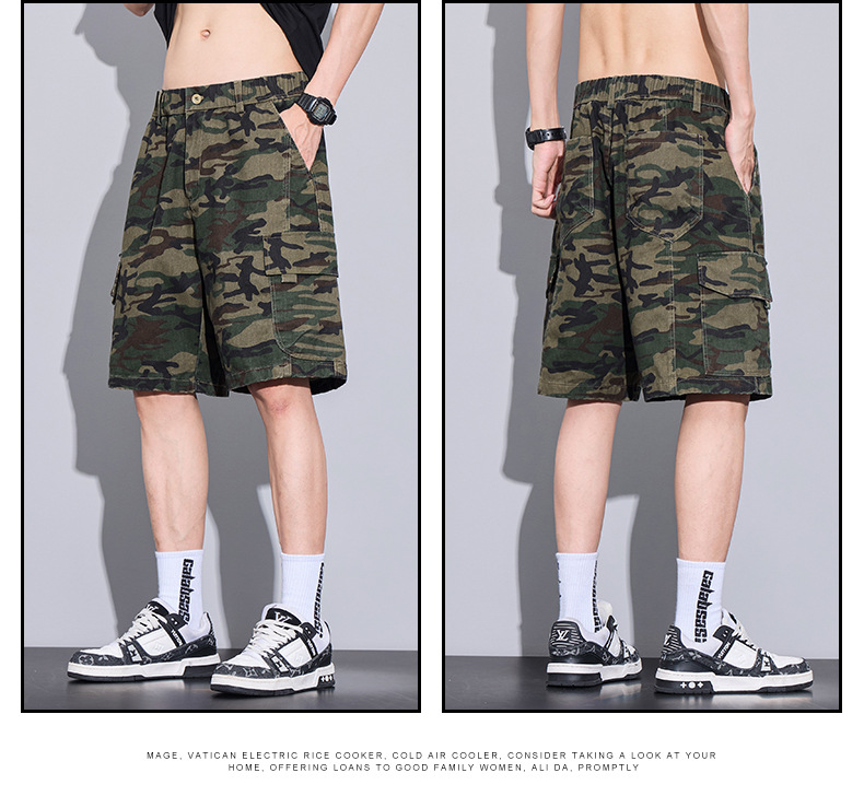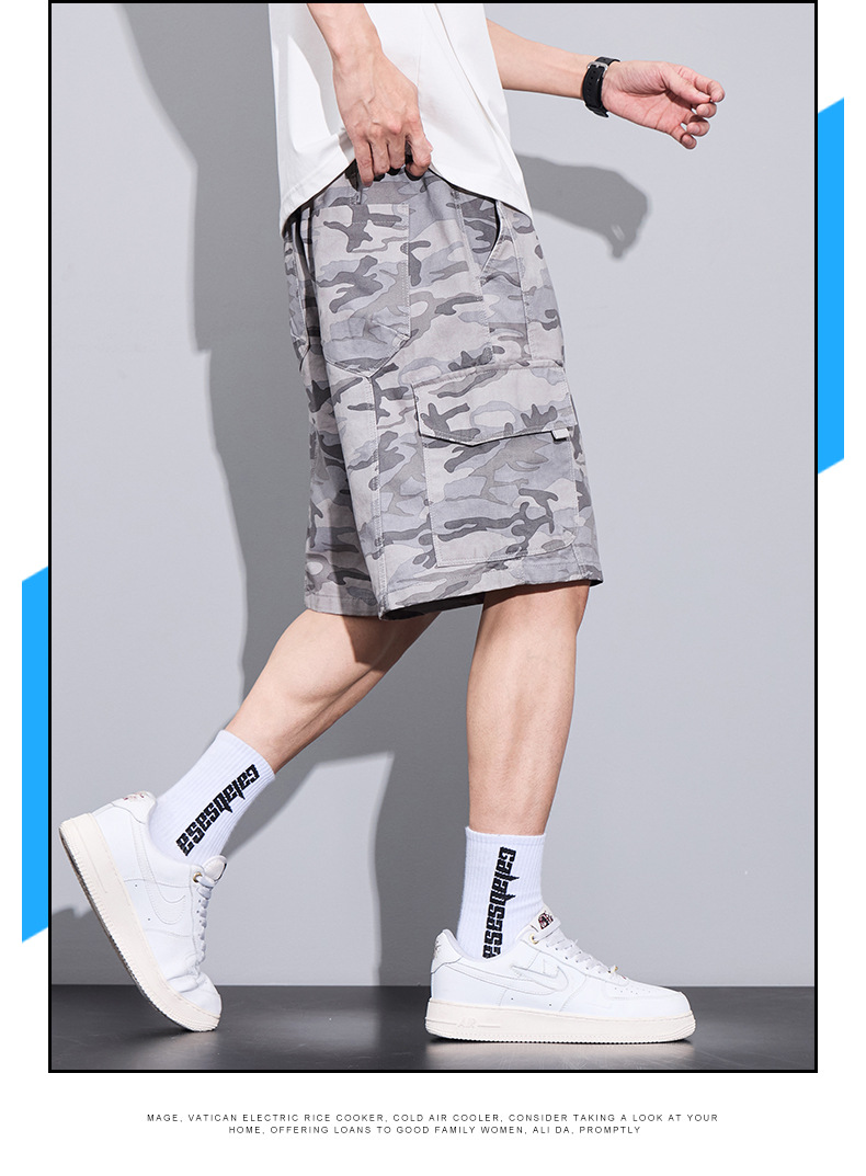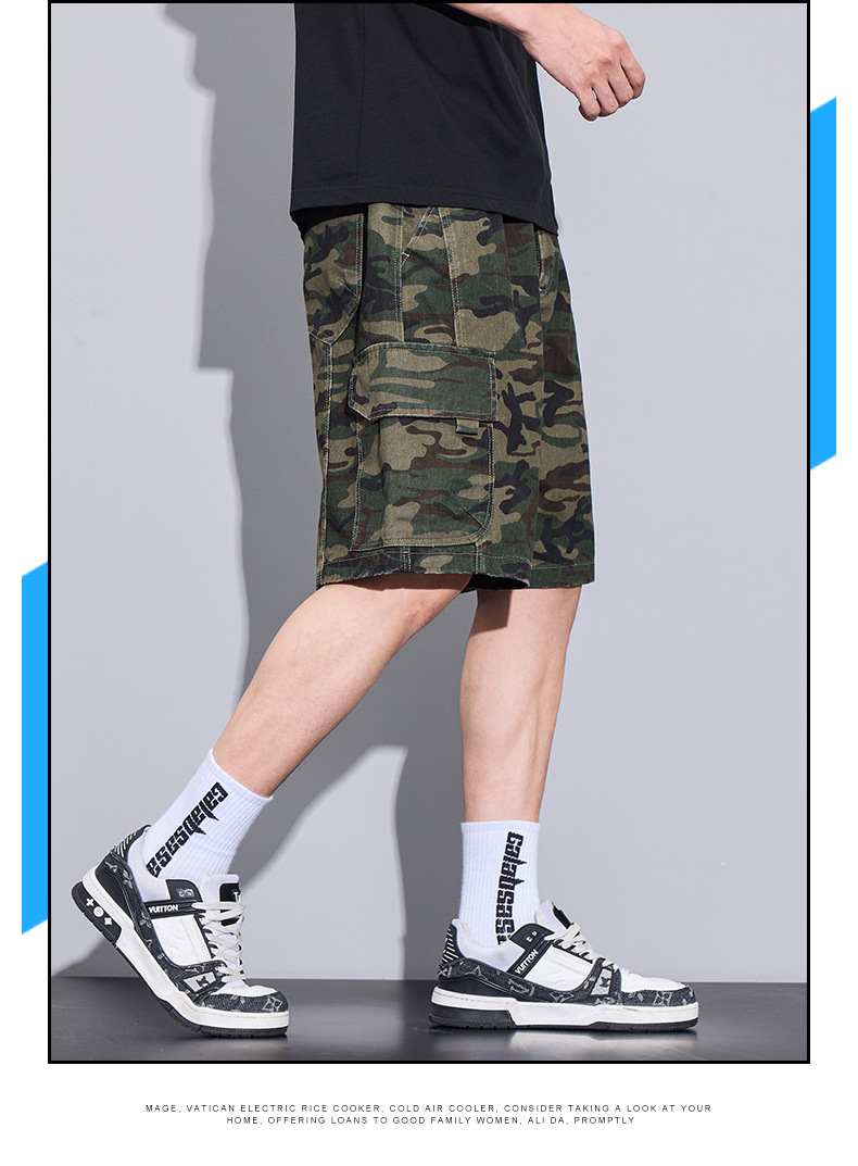 트렌디 브랜드 카모 작업복 반바지 남성 2025 여름 얇은 얼음 실크 스포츠 바지 루즈 캐주얼 아우터 5부 바지스토어 가기
