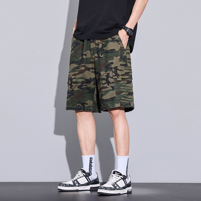 트렌디 브랜드 카모 작업복 반바지 남성 2025 여름 얇은 얼음 실크 스포츠 바지 루즈 캐주얼 아우터 5부 바지