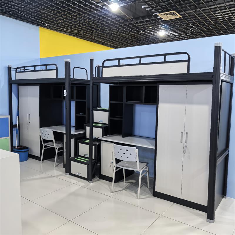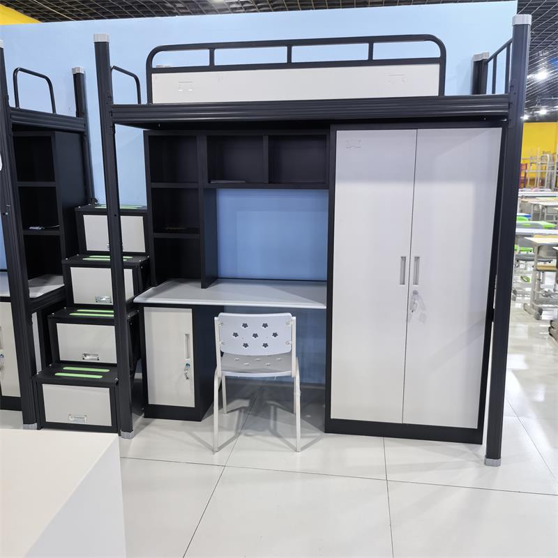 공장 도매 상단 침대 및 하단 테이블 철제 침대 학교 기숙사 철제 및 목재 결합 아파트 침대 및 하단 침대 이층 침대