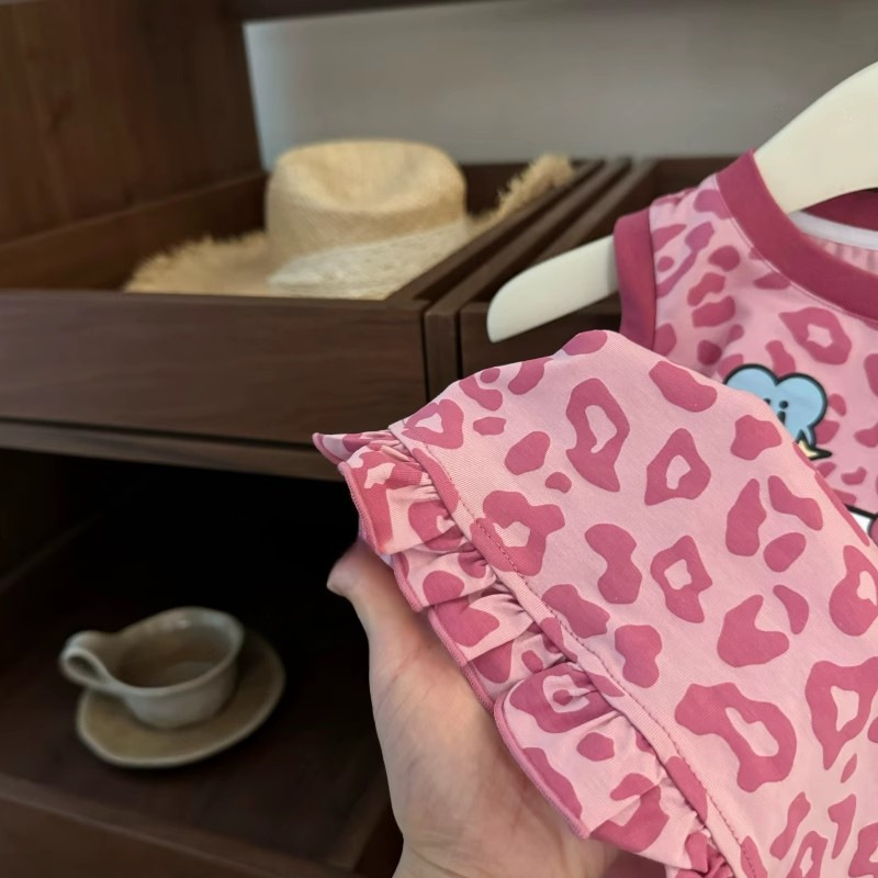 아동복 드레스 2025 여름 신상 여아 스커트 핑크 레오파드 프린트 스커트 밑단에 고양이 아기와 리본 장식스토어 가기