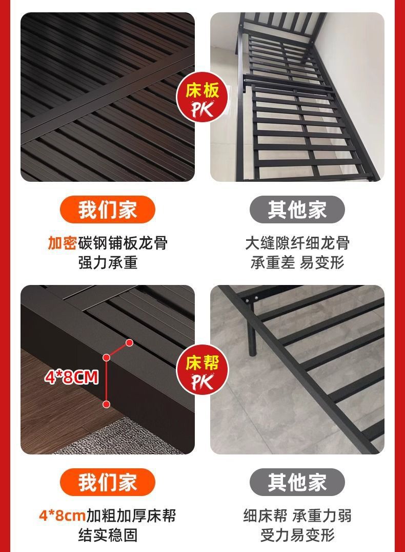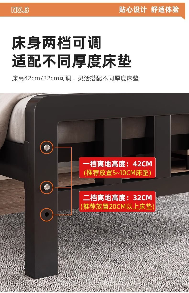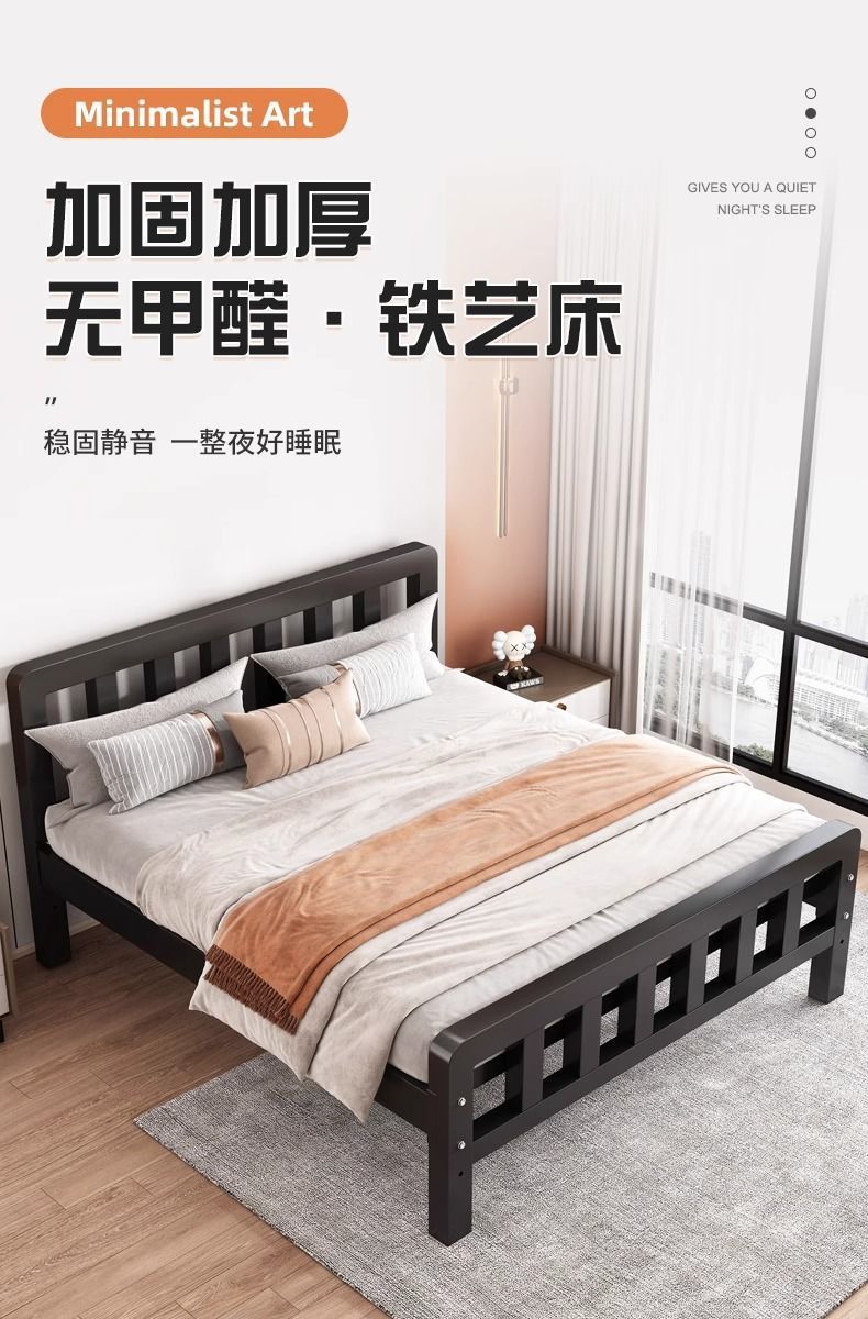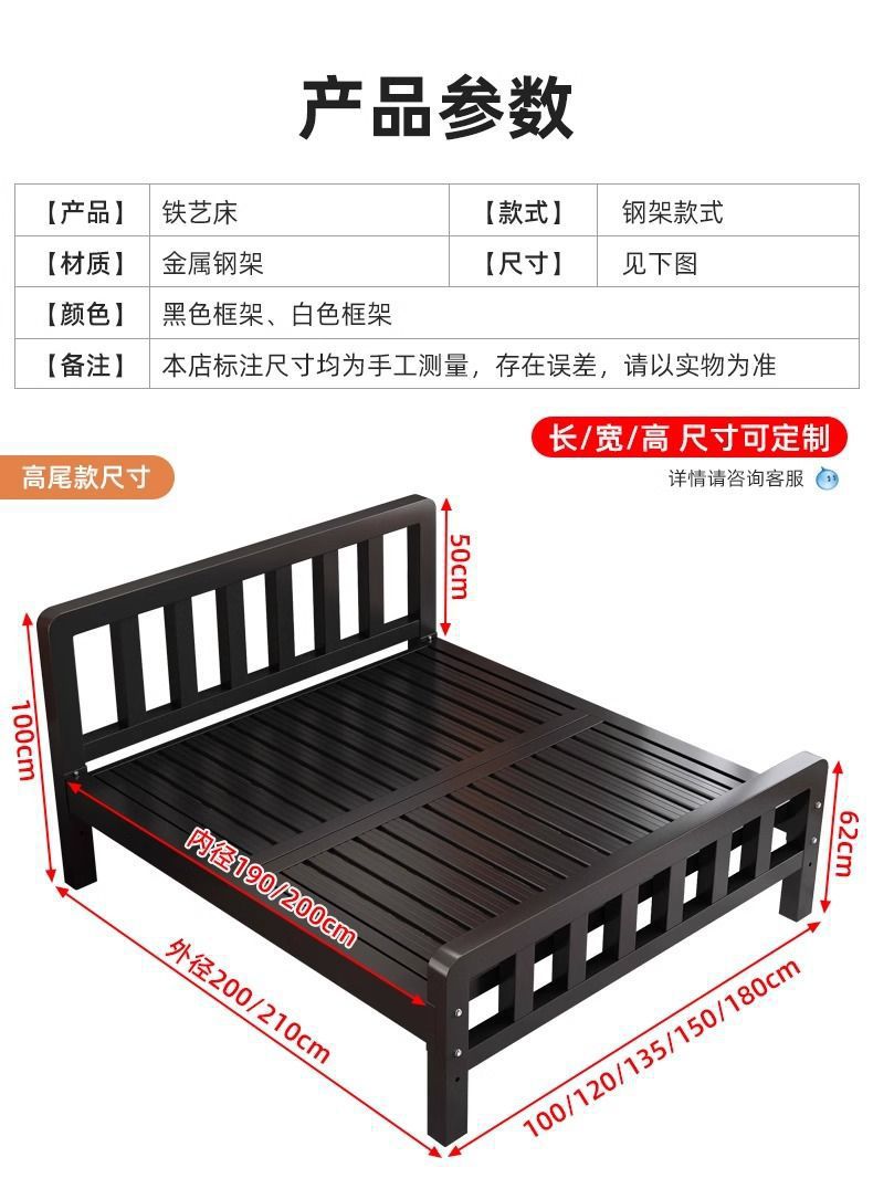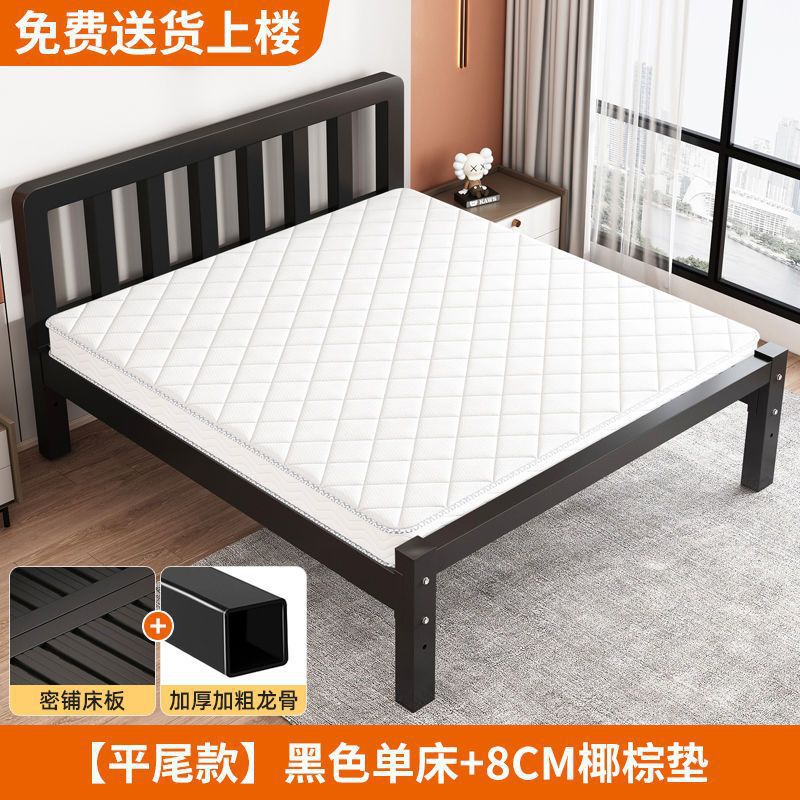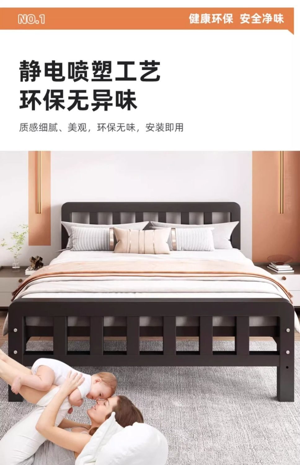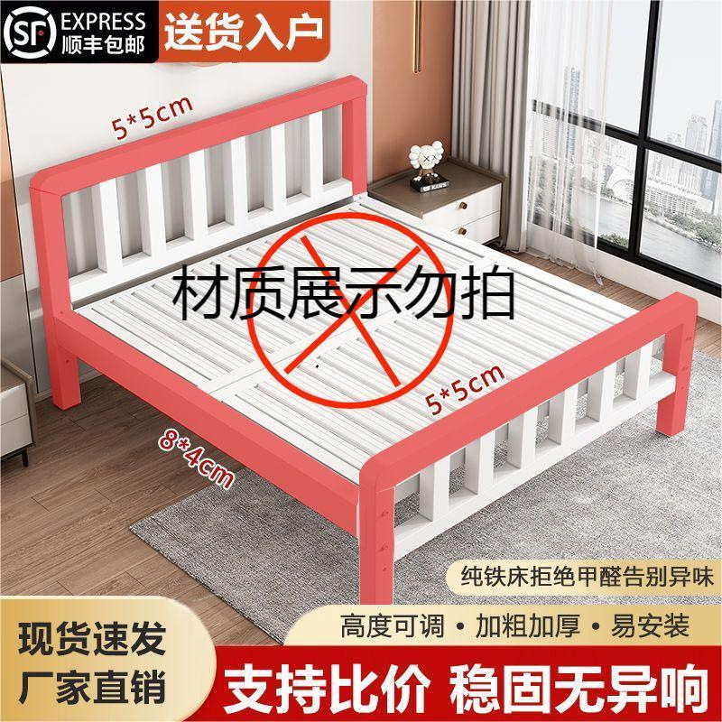 가정용 철제 침대 더블 침대 1.5m 싱글 철제 프레임 침대 스테인레스 스틸 강화 두꺼운 두꺼운 1.2m 임대용스토어 가기