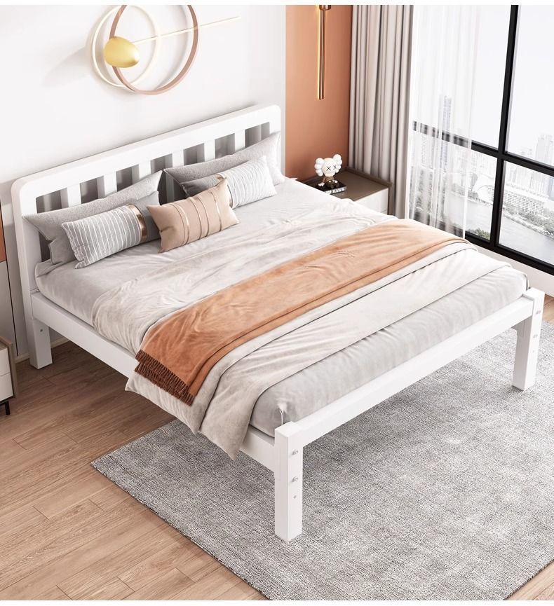 • [5*5 침대 다리] 플랫 테일 화이트 침대 + 8cm 브라운 쿠션