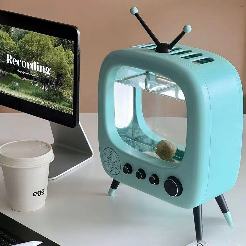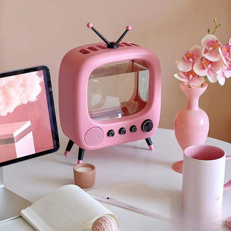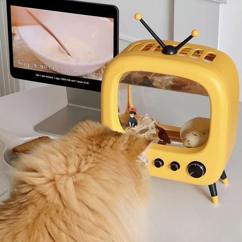 데스크탑 작은 어항 복고풍 새끼 고양이 TV 어항 마이크로 풍경 생태 betta 거실 조경 물스토어 가기