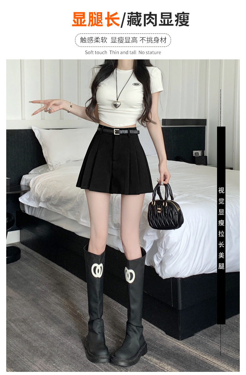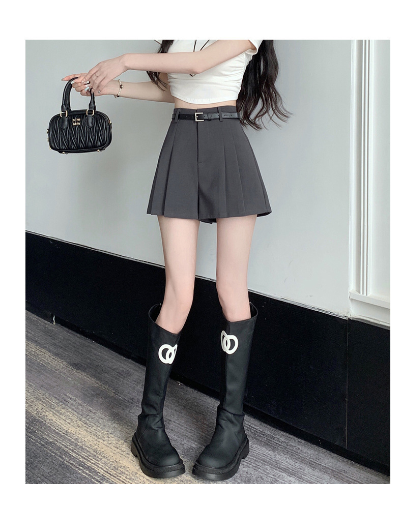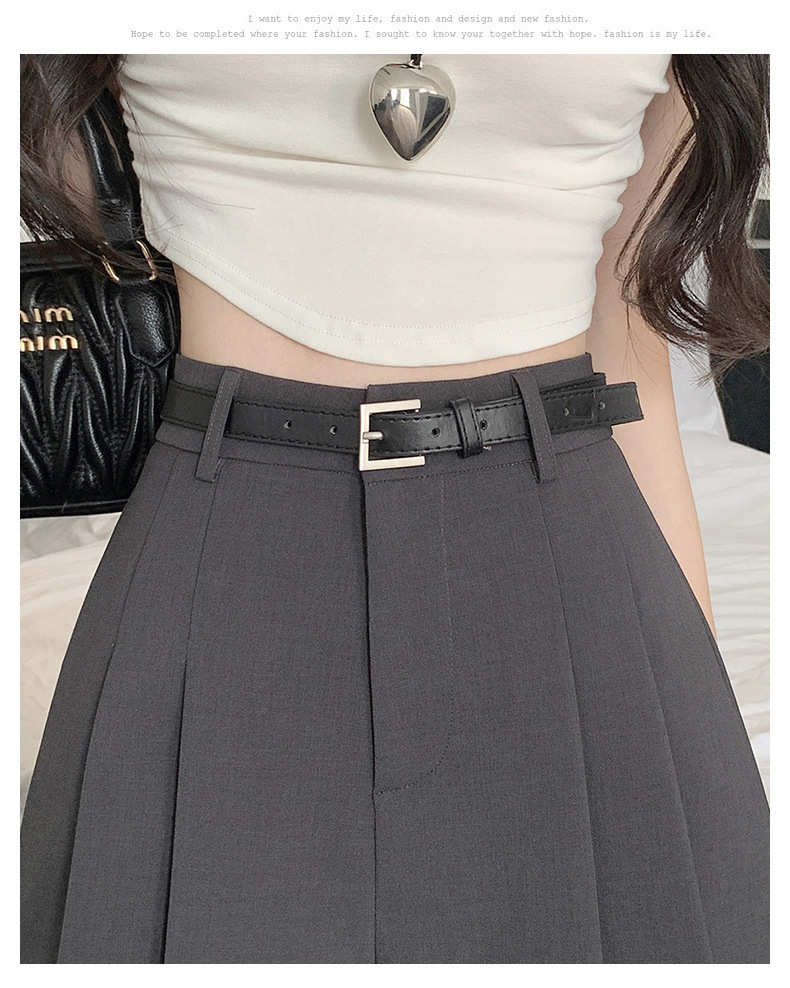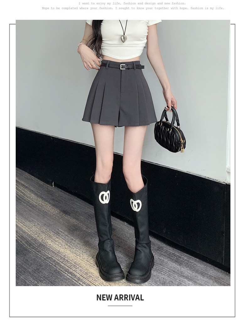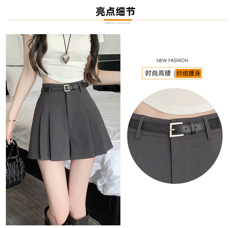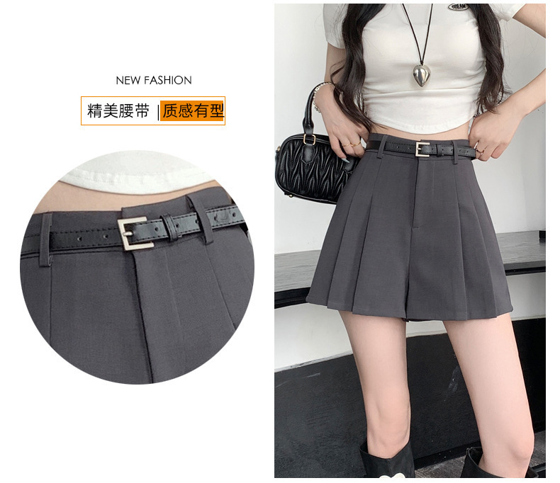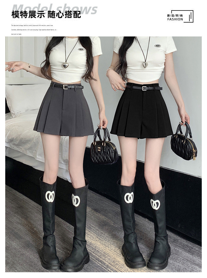 그레이 슈트 플리츠 반바지 스커트 여성 여름 얇은 2025 새로운 하이 웨이스트 슬림 a 라인 루즈 와이드 레그 핫 팬츠스토어 가기