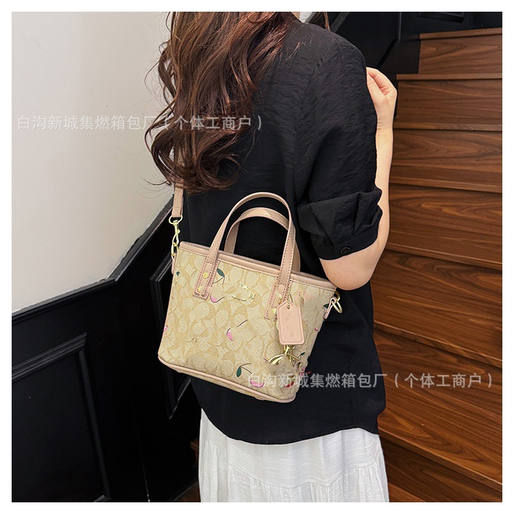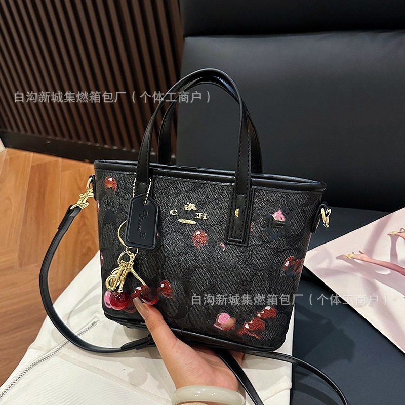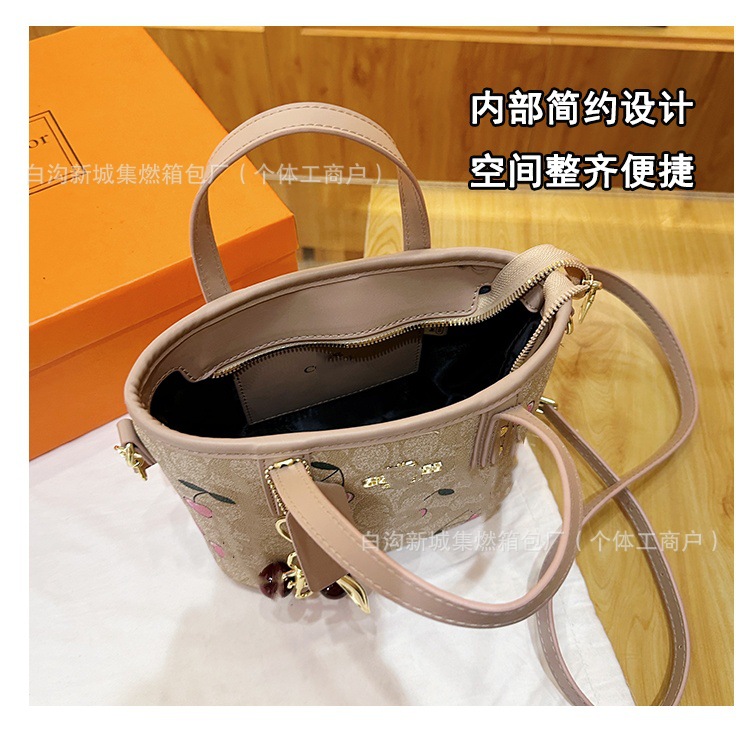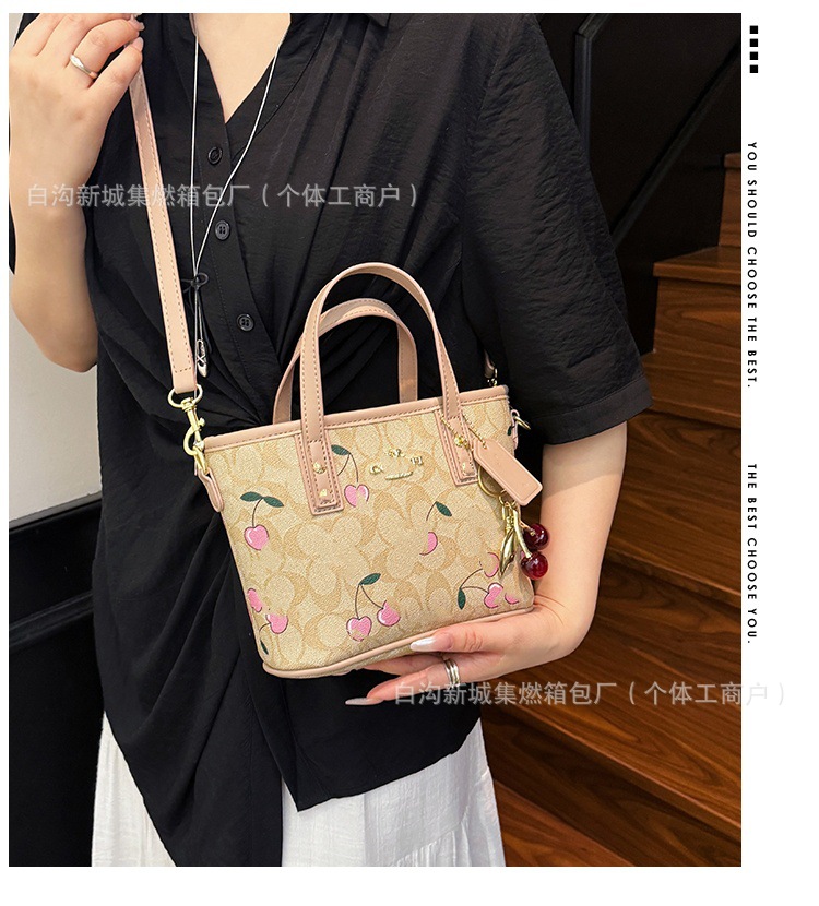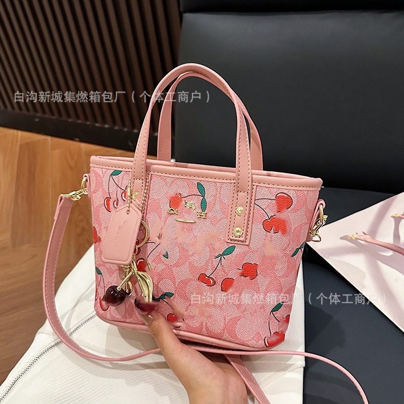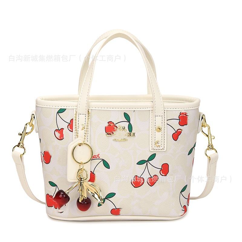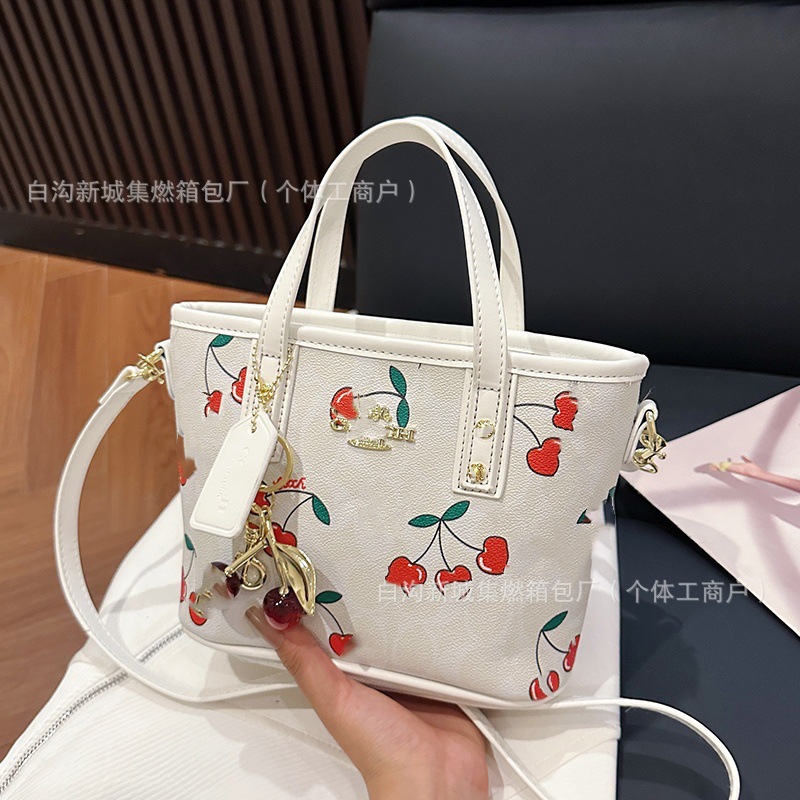 2025 여름 새로운 인쇄 체리 토트 백 여성 패션 질감 어깨 크로스 바디 백 간단한 캐주얼 핸드백