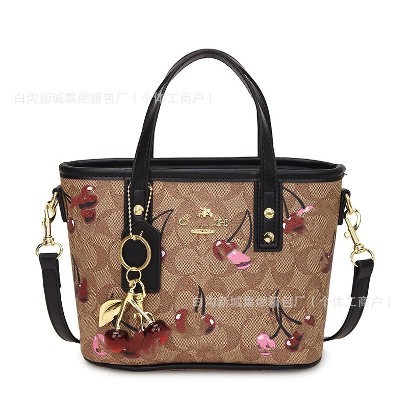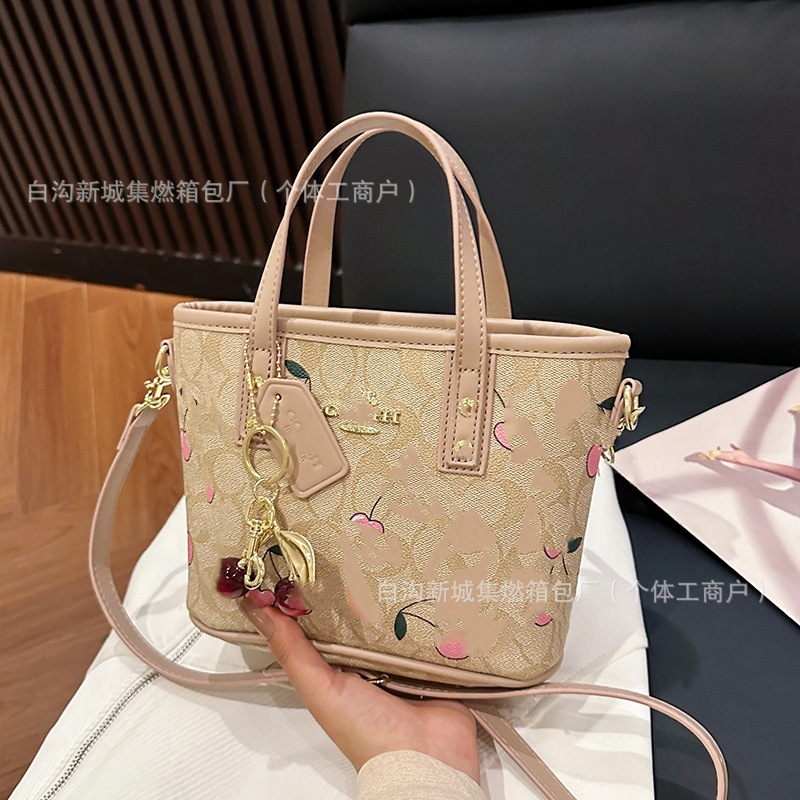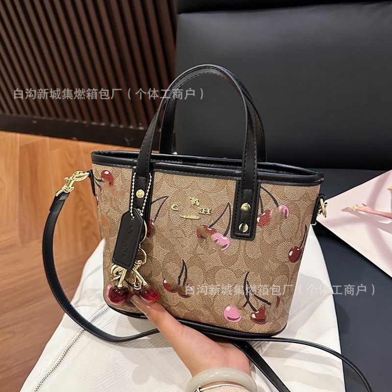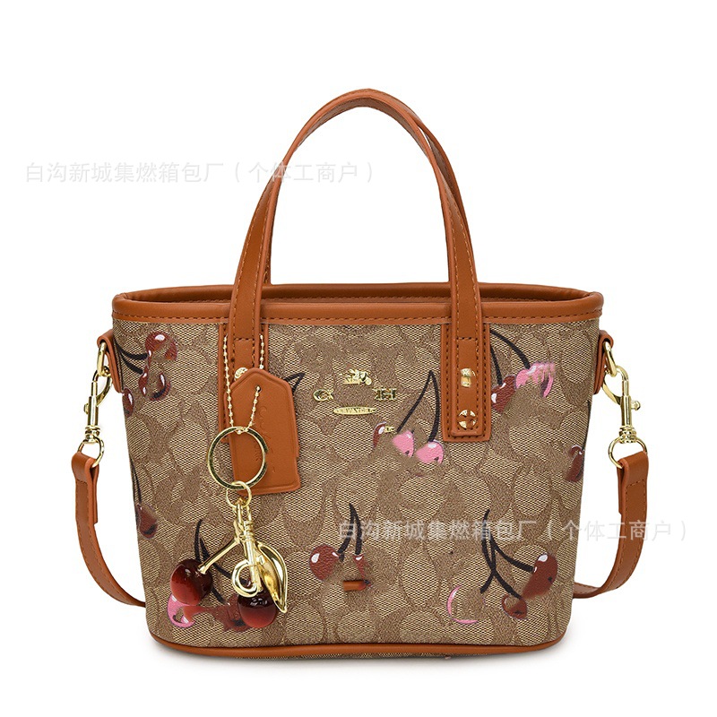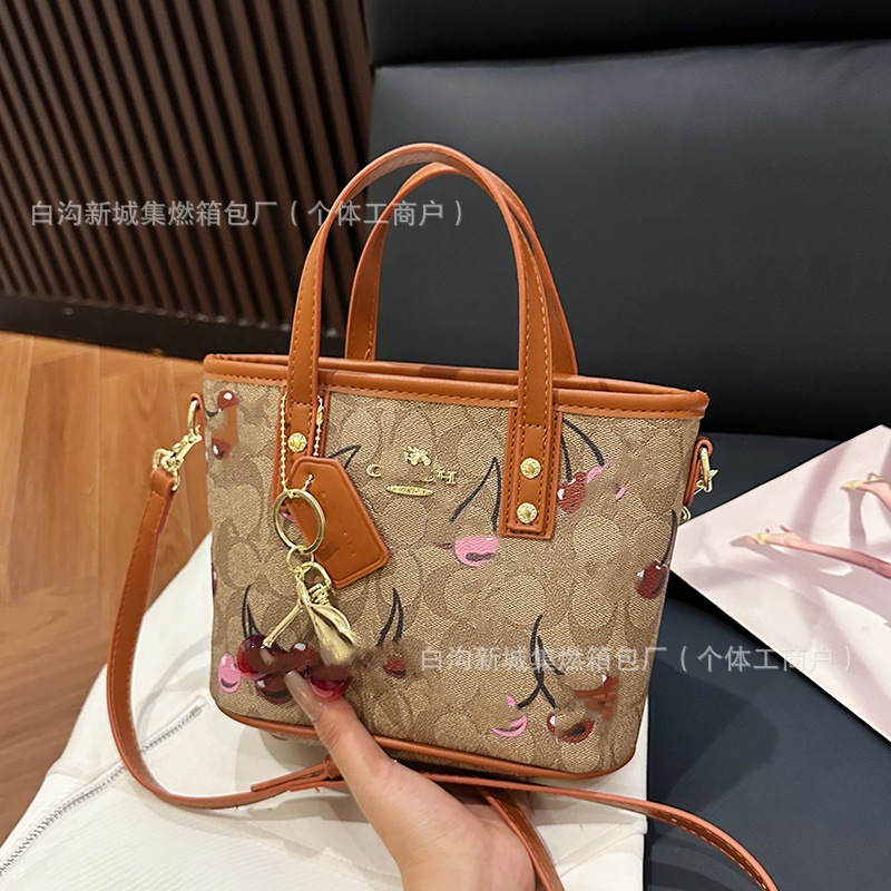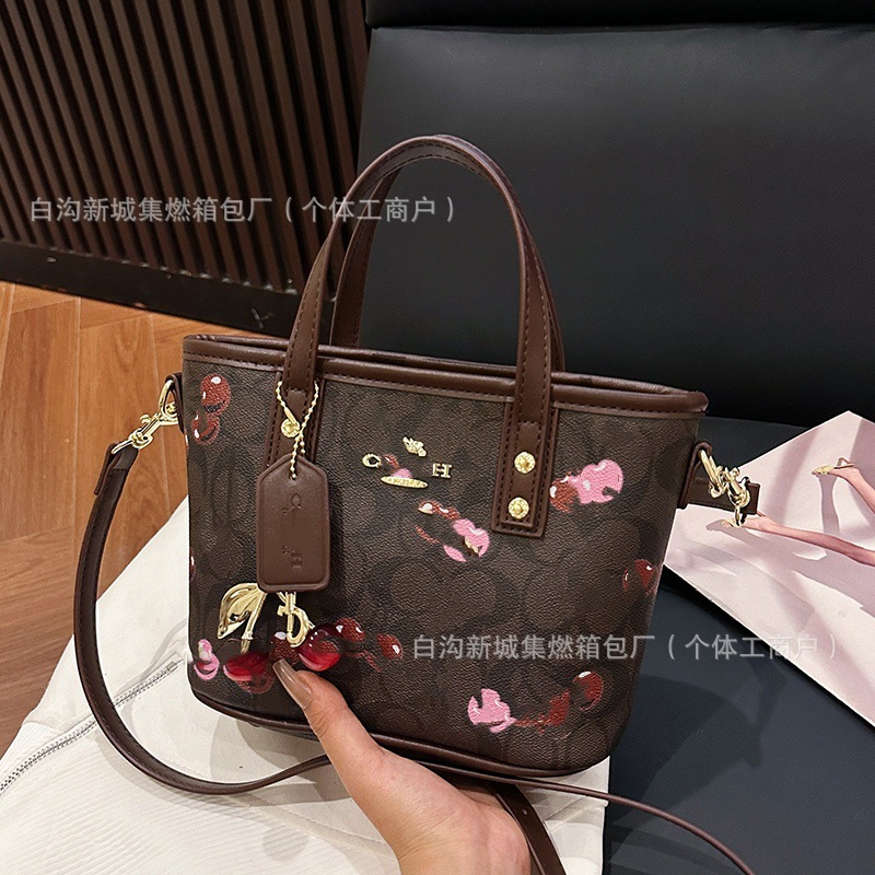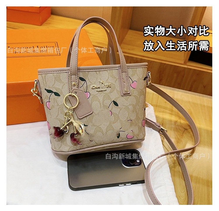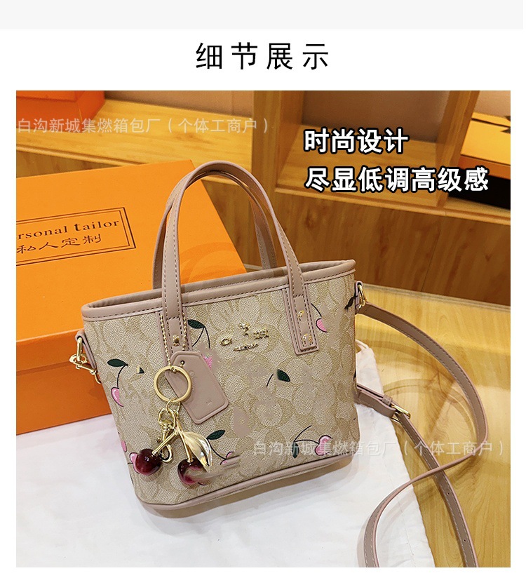 2025 여름 새로운 인쇄 체리 토트 백 여성 패션 질감 어깨 크로스 바디 백 간단한 캐주얼 핸드백