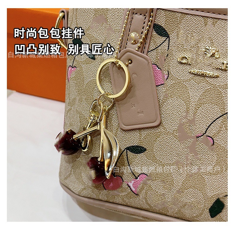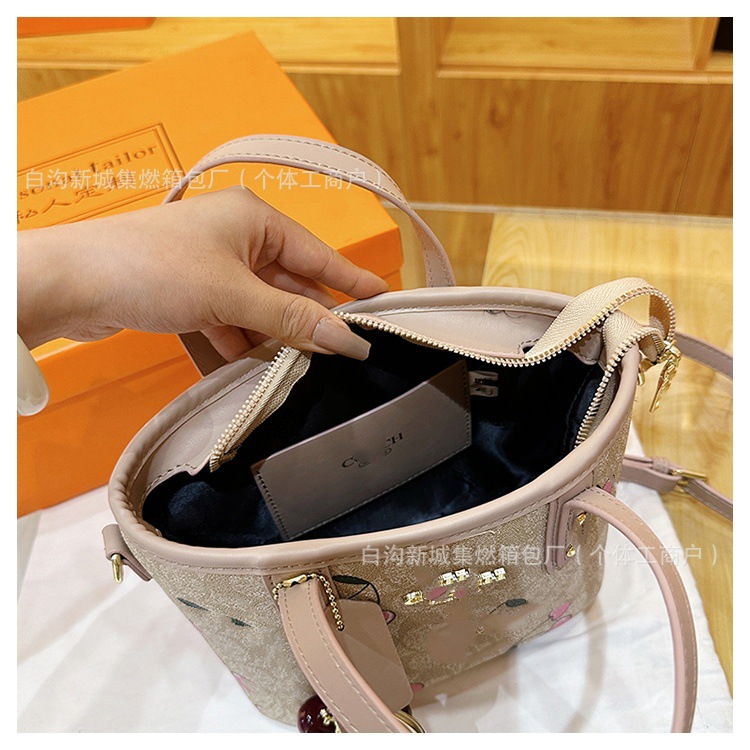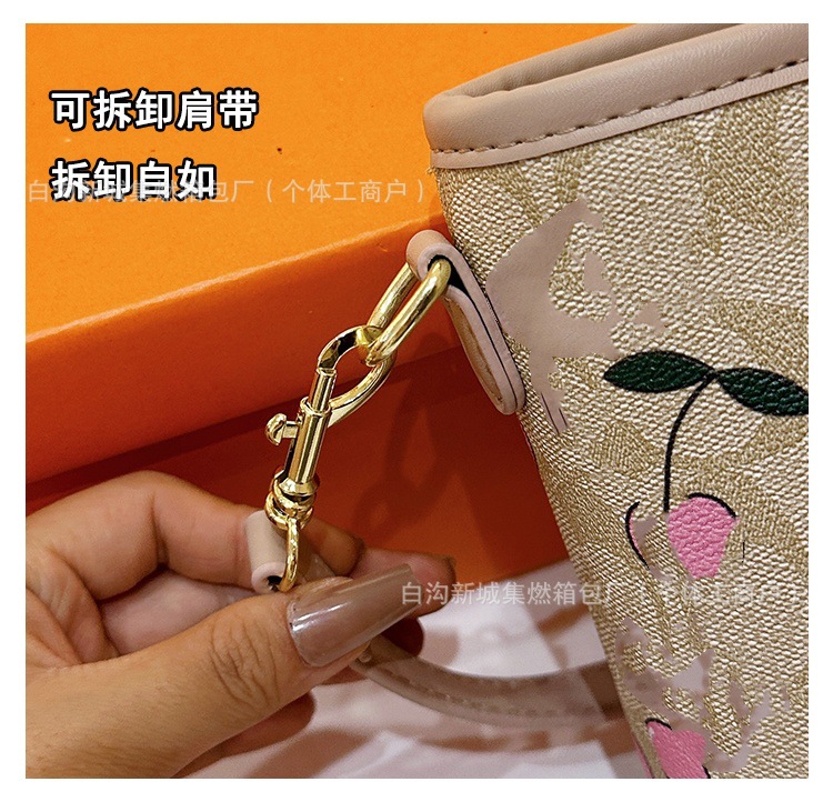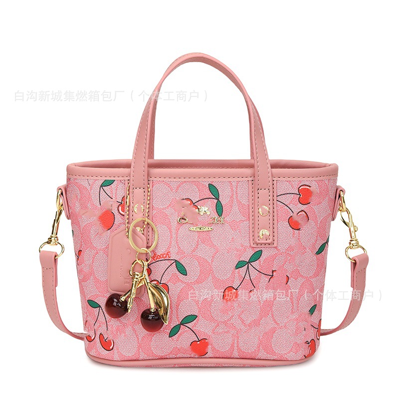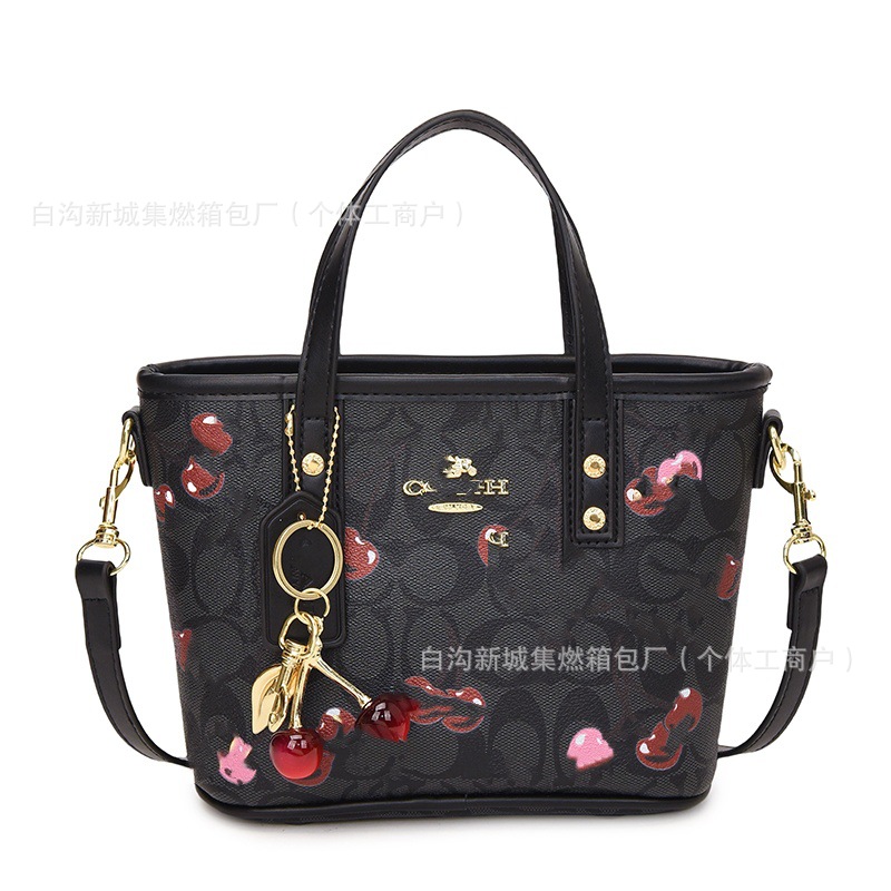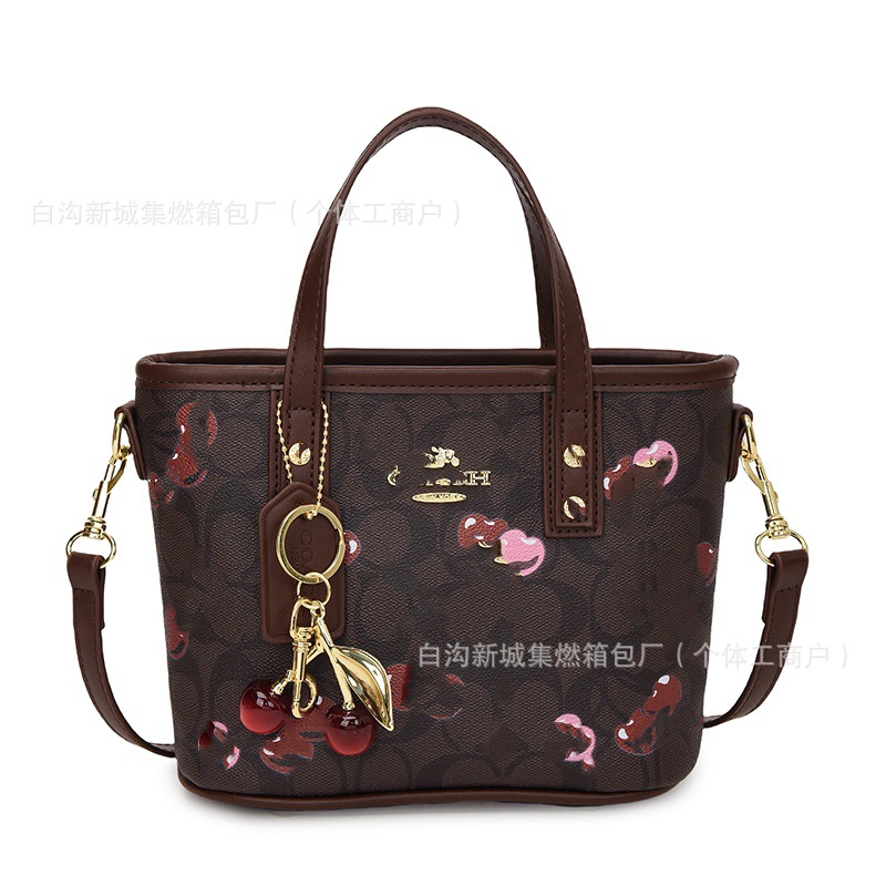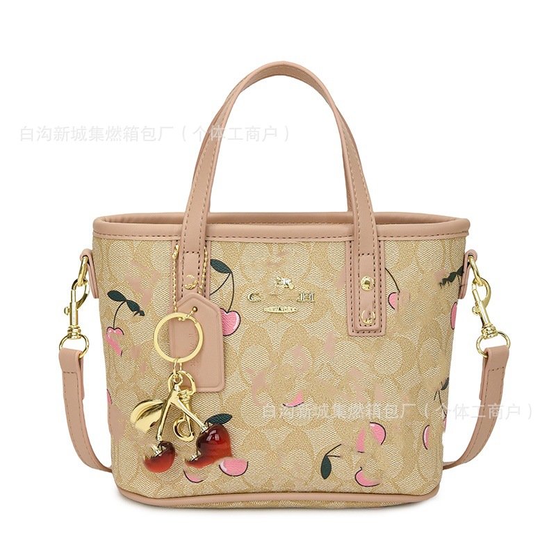 2025 여름 새로운 인쇄 체리 토트 백 여성 패션 질감 어깨 크로스 바디 백 간단한 캐주얼 핸드백