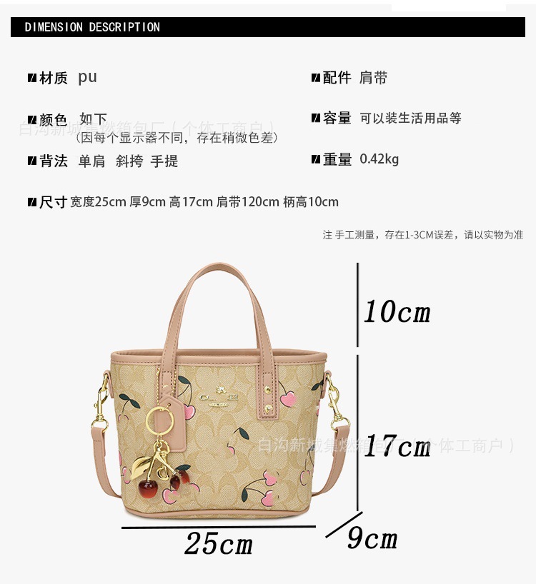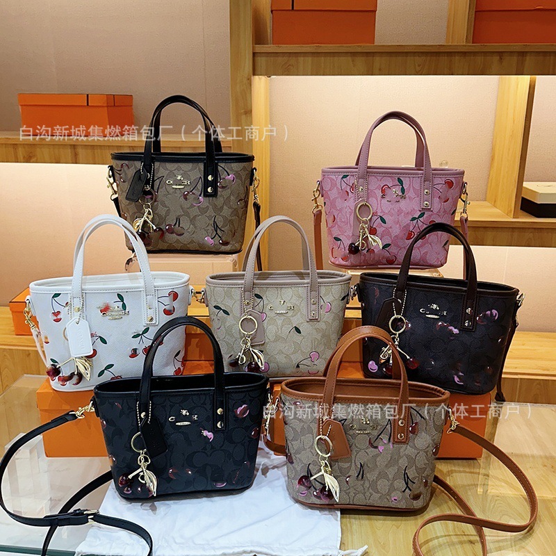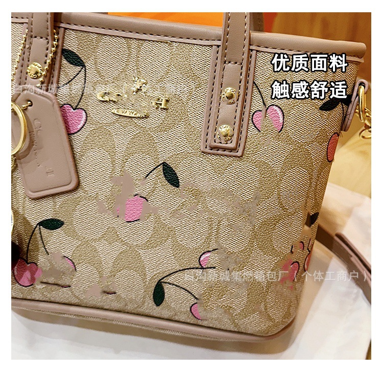 2025 여름 새로운 인쇄 체리 토트 백 여성 패션 질감 어깨 크로스 바디 백 간단한 캐주얼 핸드백스토어 가기