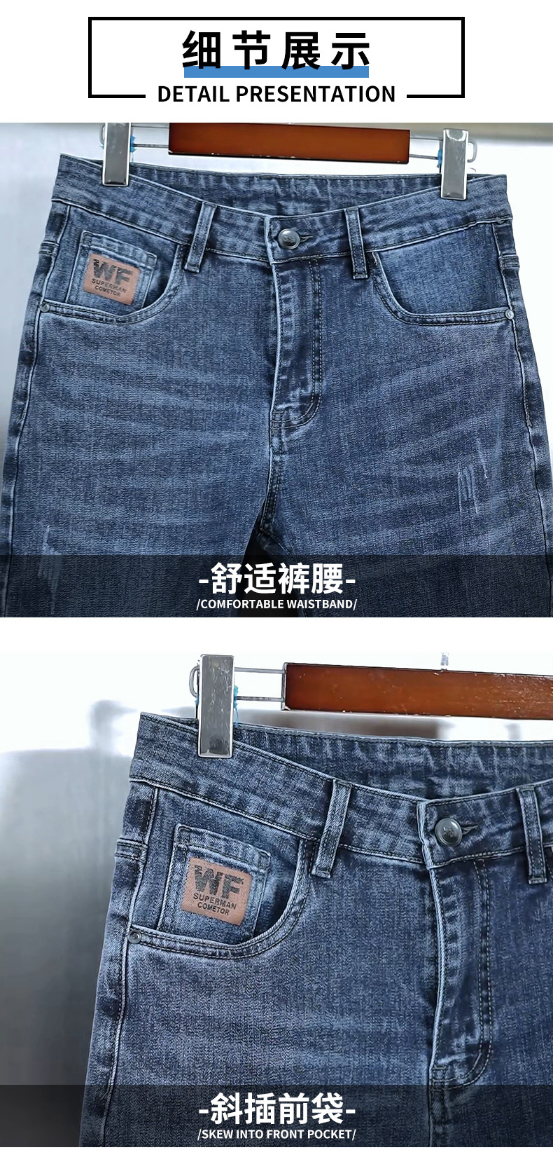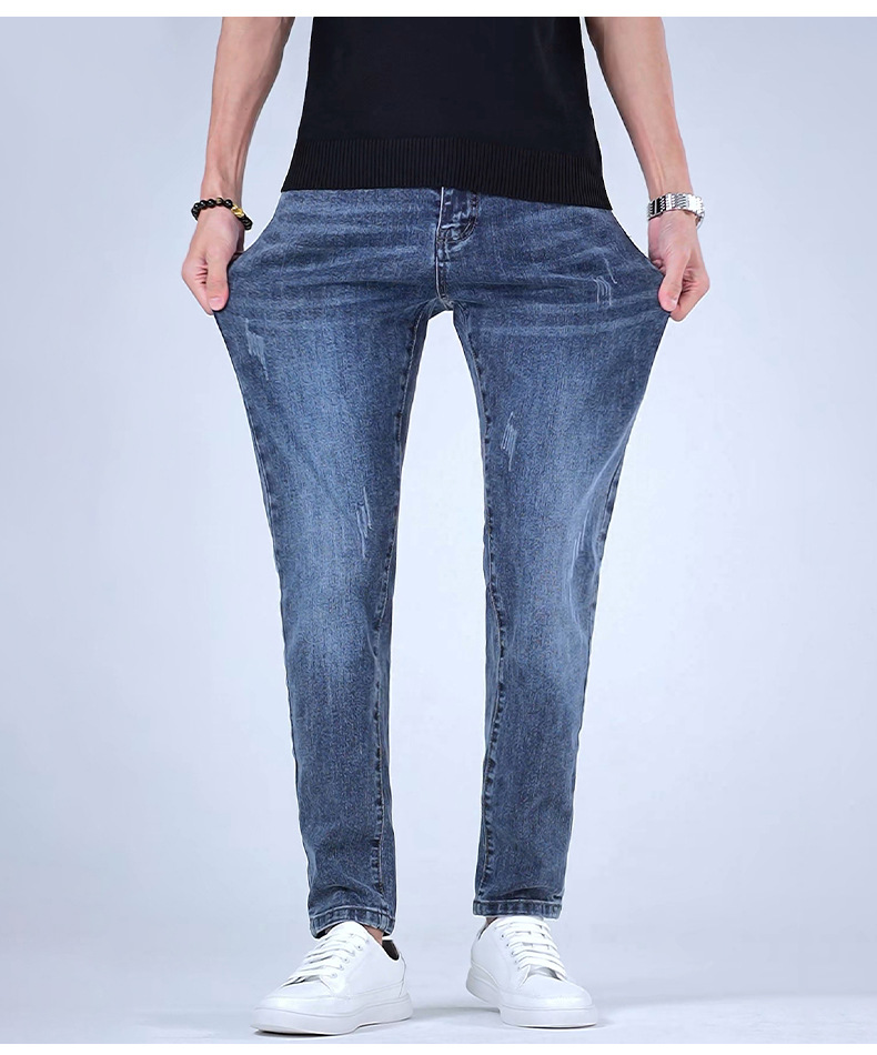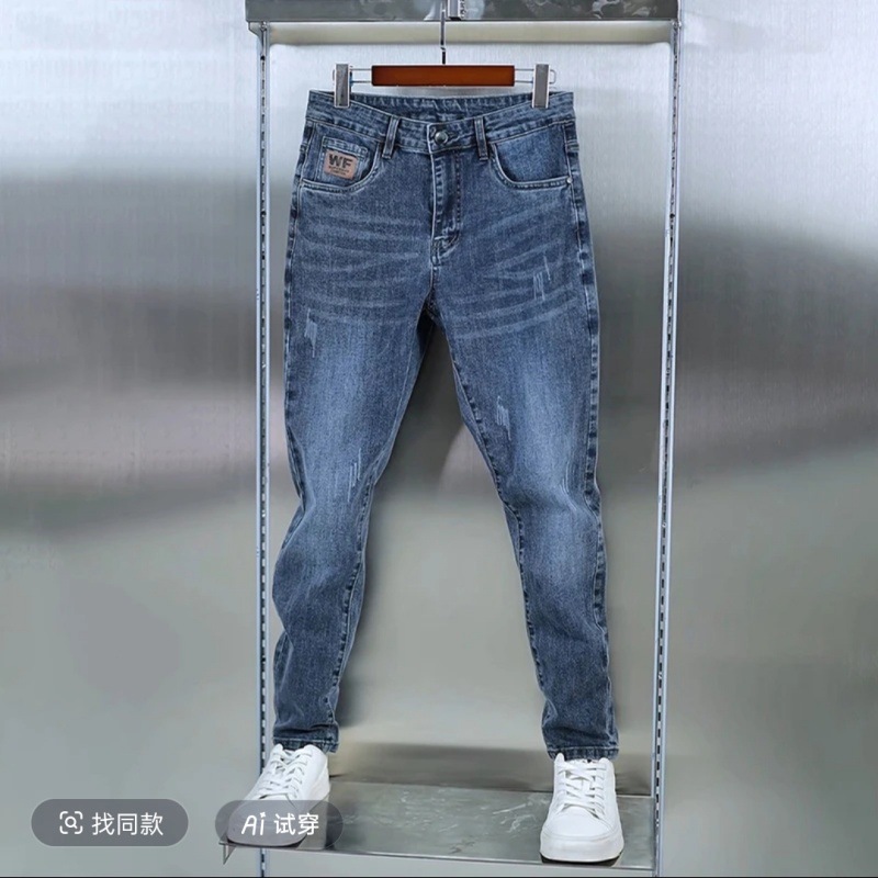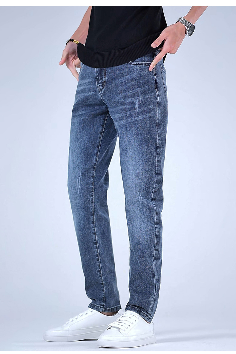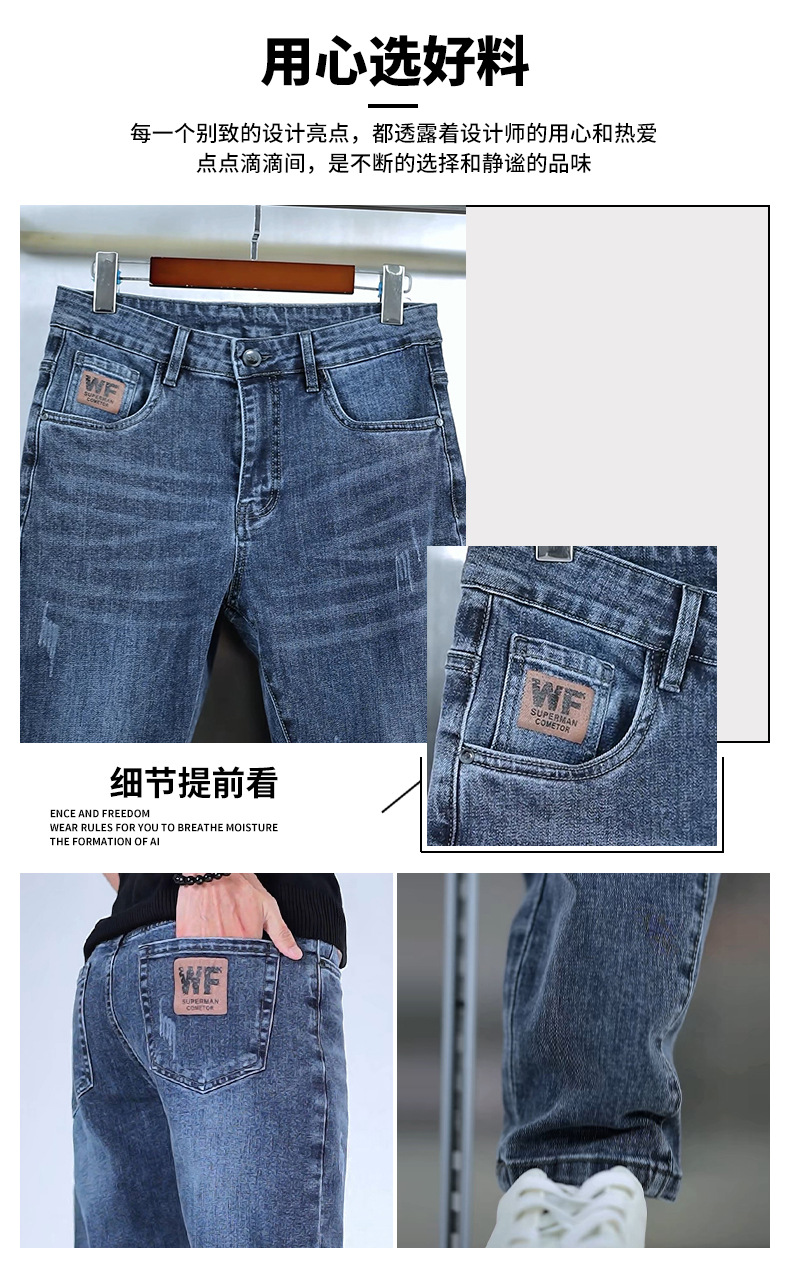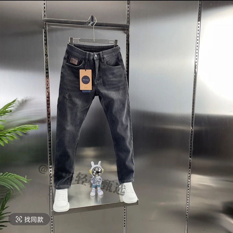 2025 봄 능직 라이크라 청바지 남성 슬림 스트레이트 편안한 스트레치 캐주얼 청바지 트렌디 남성 바지스토어 가기