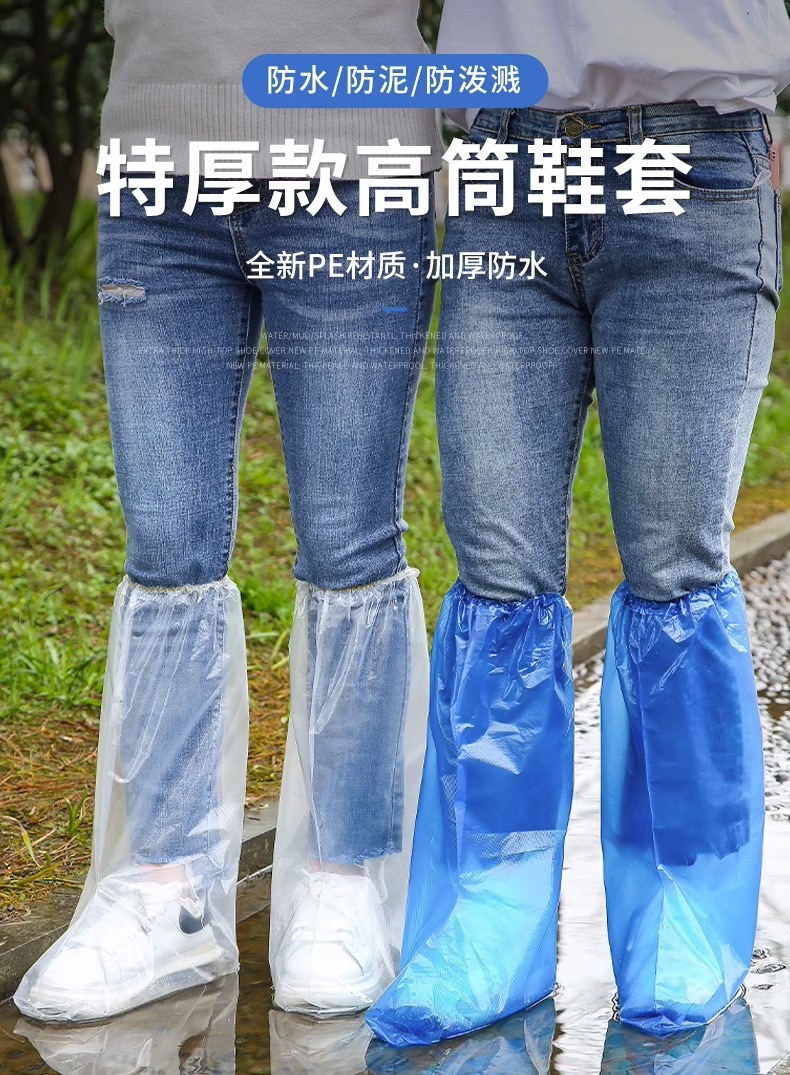비오는 날을 위한 일회용 장화 신발 커버, 방수, 미끄럼 방지, 어린이용 투명 플라스틱 발 커버, 두껍고 내마모성 및 비 방지