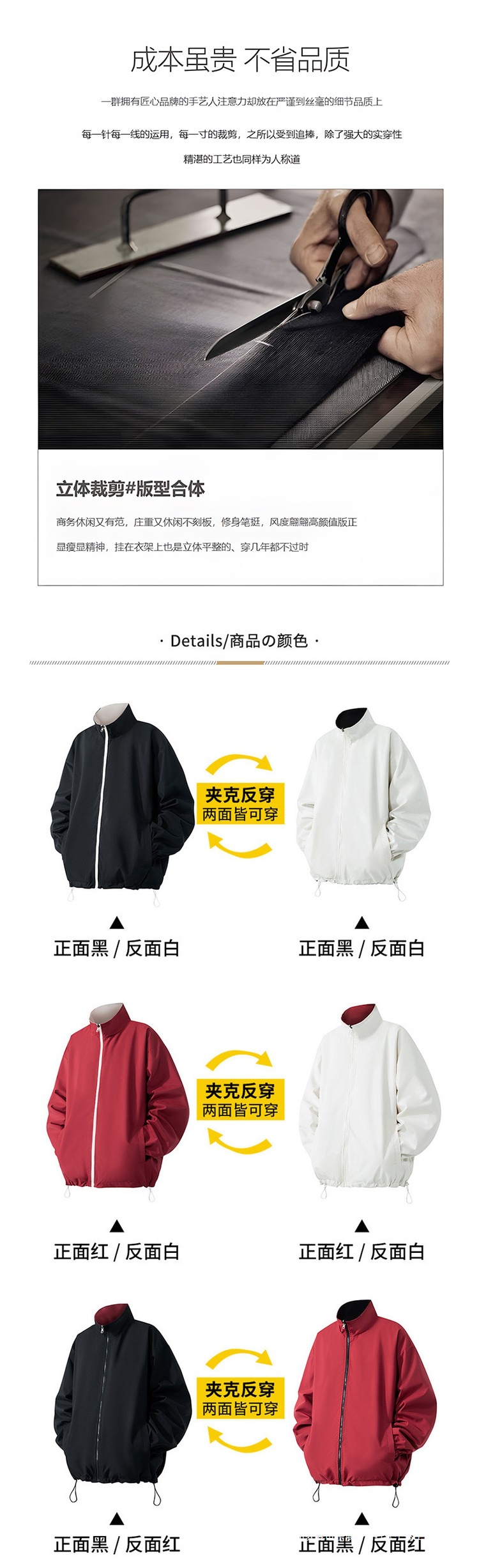 크로스보더 남성용 아메리칸 리버시블 재킷, 다용도 야구 루즈 스탠드 칼라 재킷, Nick 재고 있음