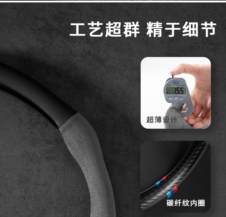 사계절 사용 가능한 자동차 핸들 커버, 초박형, 통기성, 미끄럼 방지 및 땀 흡수성 2025 남성용 및 여성용 새 스웨이드 나파 핸들 커버