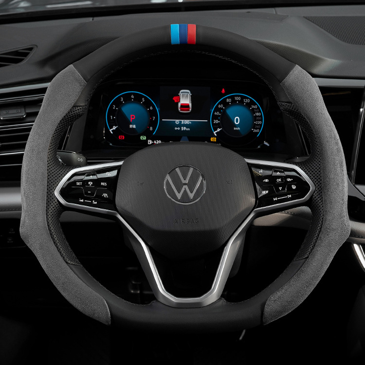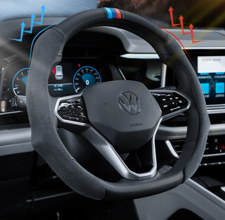 사계절 사용 가능한 자동차 핸들 커버, 초박형, 통기성, 미끄럼 방지 및 땀 흡수성 2025 남성용 및 여성용 새 스웨이드 나파 핸들 커버스토어 가기