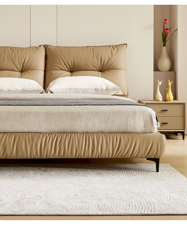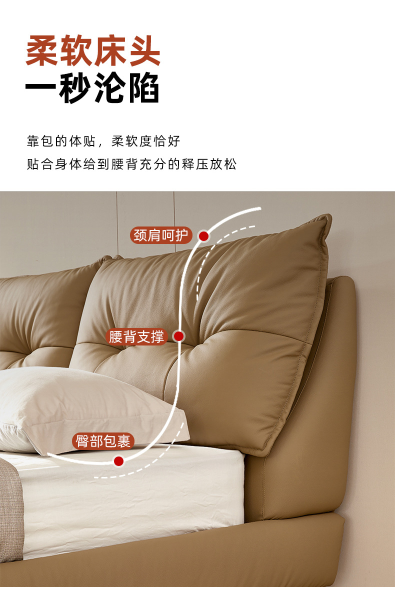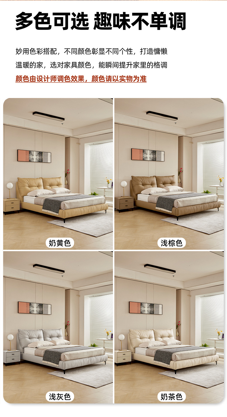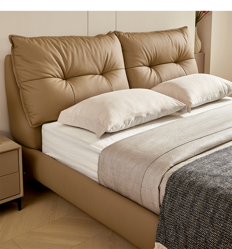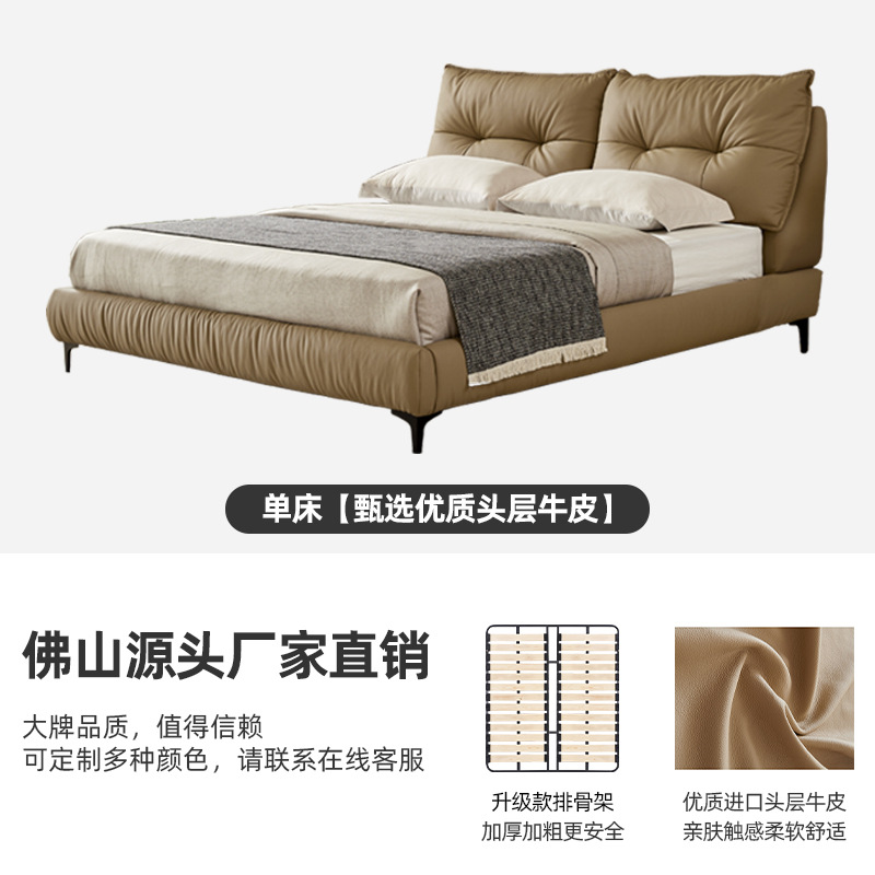 佛山 소프트 침대 공장 도매 천연 가죽 침대 더블 심플 모던 가정용 소프트 침대 대형 침실 침대스토어 가기