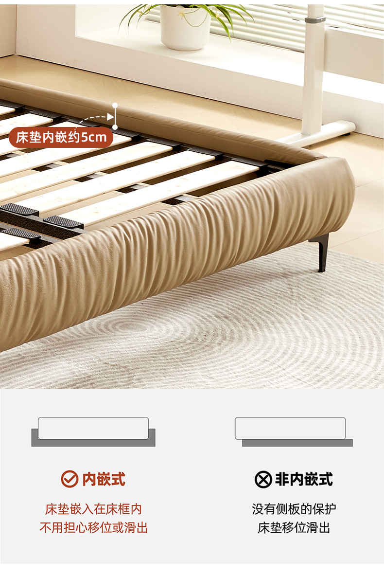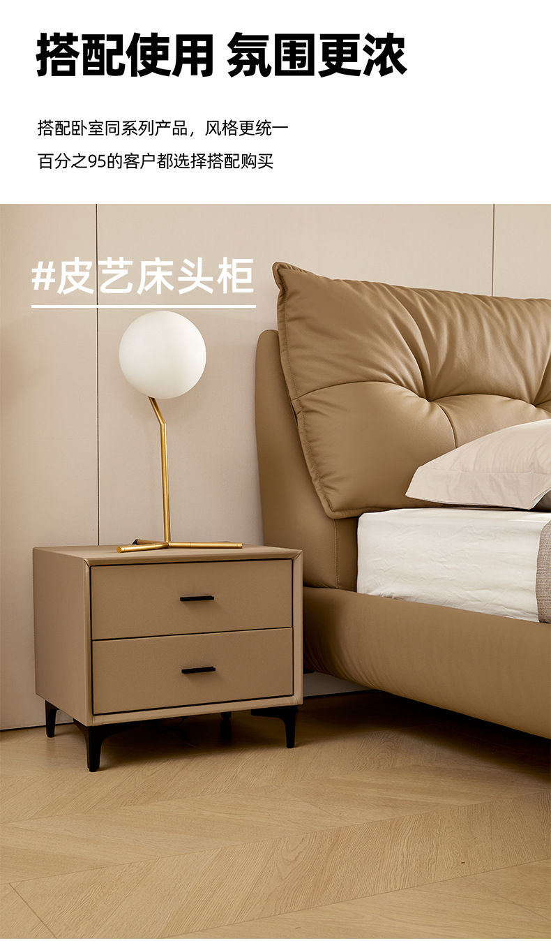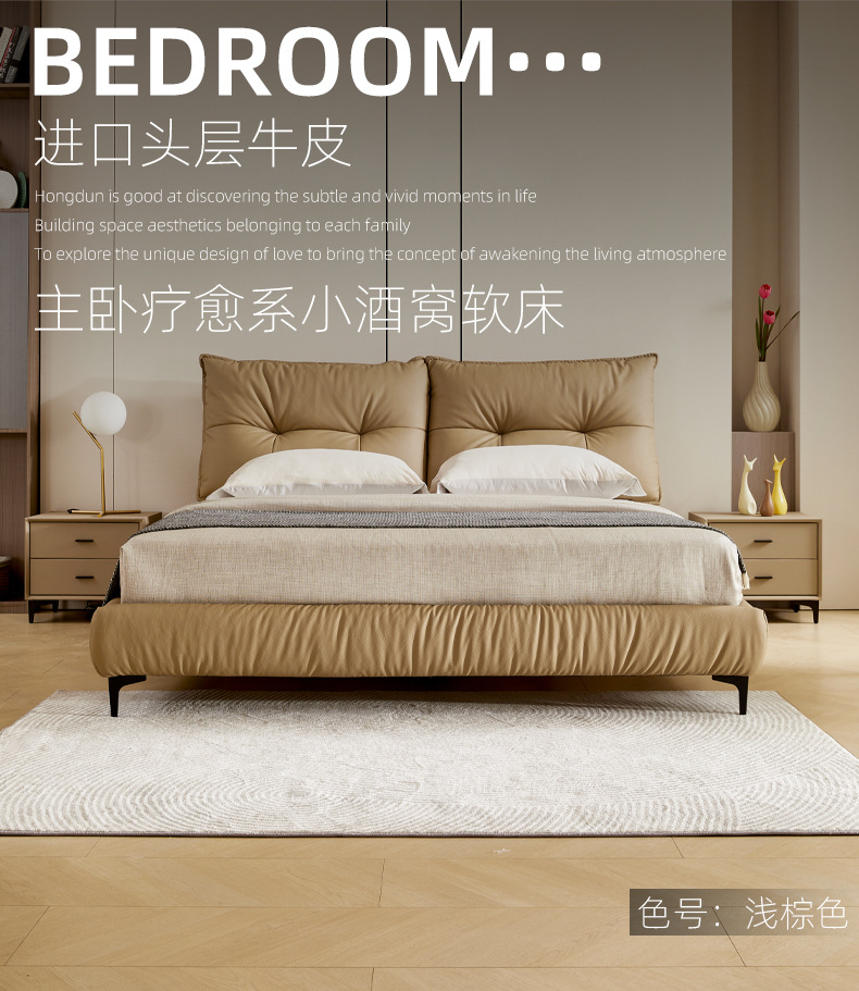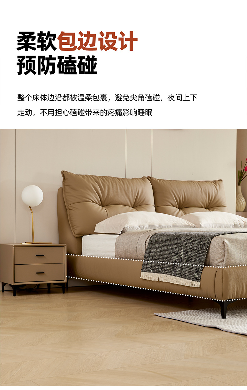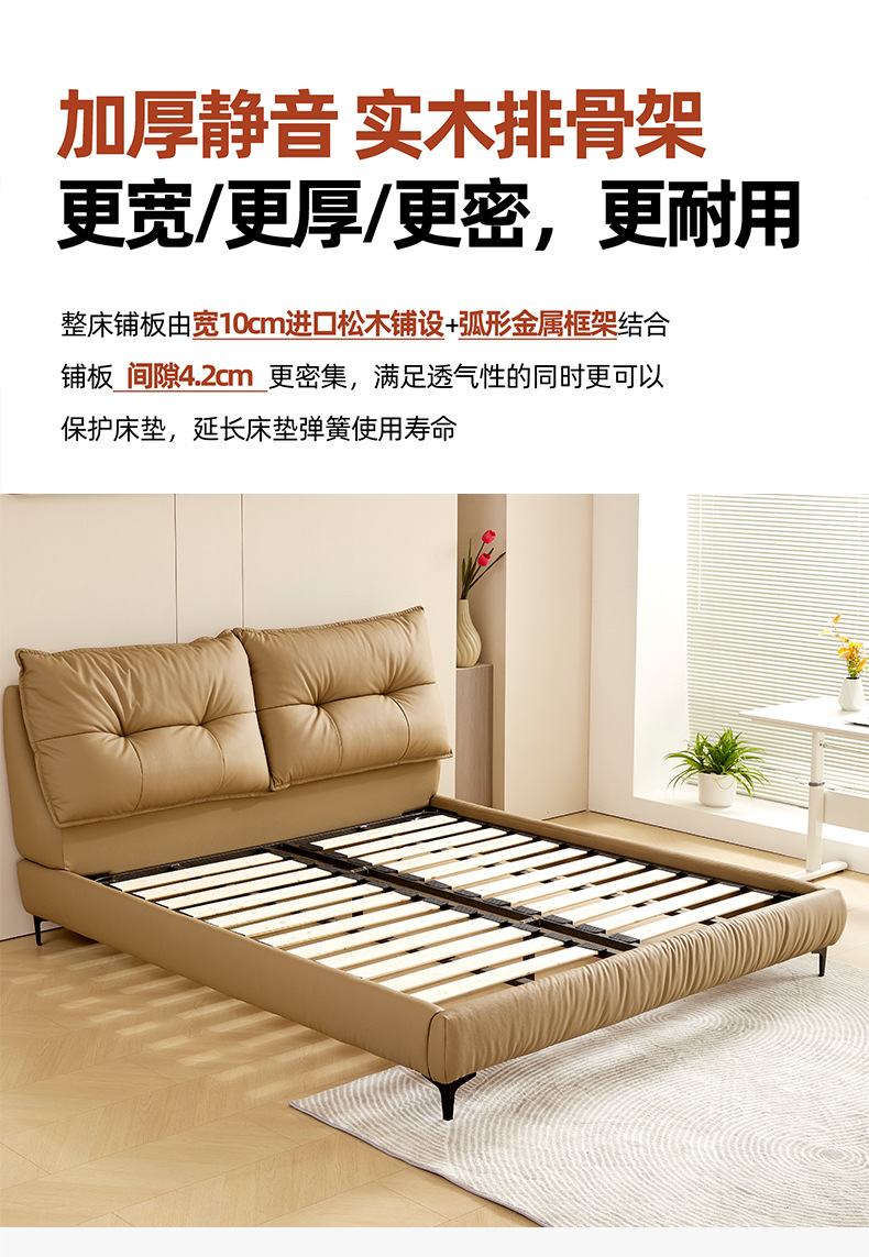 佛山 소프트 침대 공장 도매 천연 가죽 침대 더블 심플 모던 가정용 소프트 침대 대형 침실 침대스토어 가기
