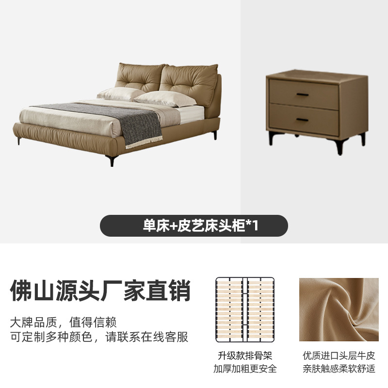 佛山 소프트 침대 공장 도매 천연 가죽 침대 더블 심플 모던 가정용 소프트 침대 대형 침실 침대
